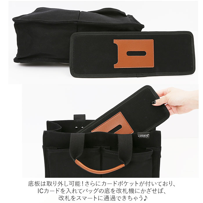 | 商品説明 | たっぷり入る仕切り機能が便利!「LIZ DAYS」から、誰でも収納上手になれちゃうキャンバストートが登場。見やすい&整理が楽チンな4つの仕切り付きトートバッグ。仕切りのサイドにはスナップボタンを装備し、スナップボタンを外せば、荷物に合わせて仕切りを折りたため広々使える。さらにスマホの収納に便利なオープンポケット×1付き。メイン収納部左側は500mlペットボトル、折りたたみ傘などを立てられ、右側はランチボックスやメイクポーチを収納するのに最適。手前はB5サイズがすっぽり入るサイズ感(マグネットボタンが閉まらない可能性がございます)外側に前後と左右合わせて計6つのオープンポケットを配置し、小物がたくさん入る仕様に。底板は取り外し可能!さらにカードポケットが付いており、ICカードを入れてバッグの底を改札機にかざせば、改札をスマートに通過できちゃう♪しっかりとしたキャンバス生地を採用。バッグが型崩れせずきちんと自立して、使い勝手が抜群!太めに設計された持ち手ハンドルで手持ちはもちろん、付属のショルダーベルトを使用すれば斜め掛け、肩掛けの2WAYスタイルが楽しめるのもポイント。通勤・通学、普段のお出かけなど幅広く活躍。 |