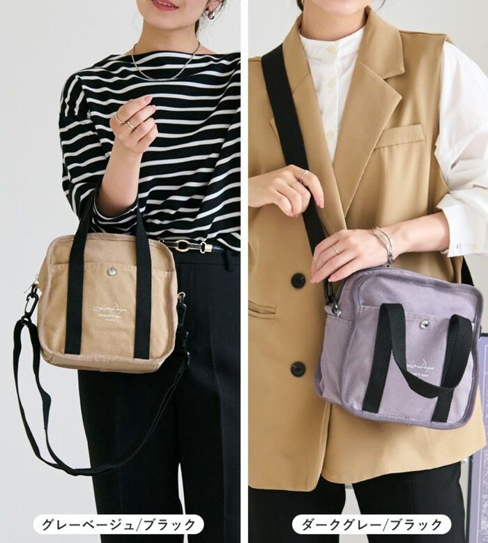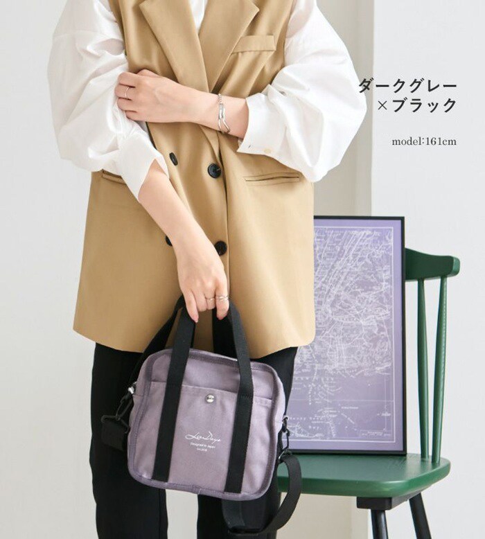 LIZDAYS キャンバス2WAYミニトート【ダークグレー/ブラック】