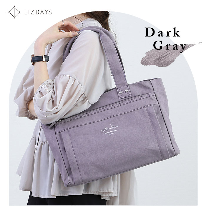 LIZDAYS 仕切り付きWアクセスロングハンドルトート【DGY.ダークグレー】