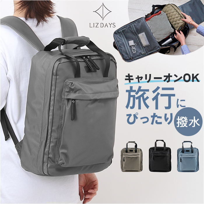 | 商品説明 | 【旅行や出張に最適な頼れる相棒】たっぷり入る、便利なキャリーケース仕様☆「LIZDAYS ナイロンリュックサック」。【ガバっと大きく180度オープン】ダブルファスナー式の開口部を開くと、中身が一目瞭然!パッキングもラクラク対応。【クロスベルトで荷物をホールド】メインルームにキャリーケースのようなベルトを装備。荷物が動かずリュックの型崩れもガード。【A4対応でざっくりひとまとめ】A4がすっぽり。1泊程度の着替えやメイクポーチなどが収まる、ちょうどいいサイズ感。【サクッと取り出せて迷子知らず】内側・外側合わせて5つのポケットを配置。バッグの中で、小物を探す手間が不要。【背負い心地軽やかでストレスフリー】体に負担がかかりにくい軽量設計。ショルダーと背面には、クッション性をプラス。【夏場でもムレにくいメッシュ生地】ショルダーは通気性の良いメッシュ仕様。暑い季節の長時間移動も、サラッと快適。【リュックを下ろすシーンで便利】電車の中などで下ろす時も、手持ちしやすいハンドル。シーンや気分でトート風に。(※1)ハンドルは面ファスナーでまとめることが可能です。【キャリーオンOKで移動もスマート】背面のテープベルトを、キャリーのハンドルに差し込めるキャリーオンタイプ。【不意の雨にも対応できて丈夫な質感】厚手の高密度ナイロンに、汚れや水滴を弾きやすい撥水加工済み。お手入れも拭き取るだけ。(※2)完全防水ではありません。【飽きが来ず長く愛用できるデザイン】トレンドに左右されず、どんなコーデにもマッチ。落ち着きのある仕上がりが魅力◎【ポケット仕様】内側:ファスナー式メッシュポケット×2、ファスナーポケット×2前面:ファスナーポケット×1 |