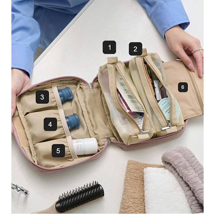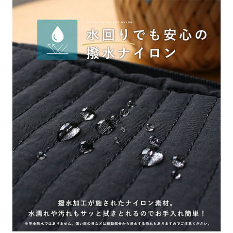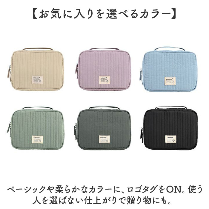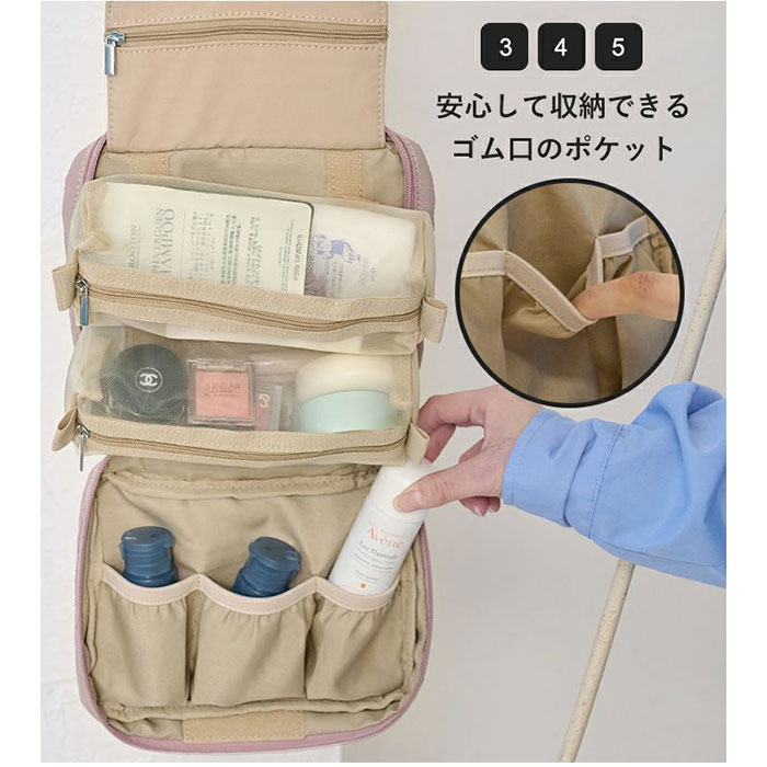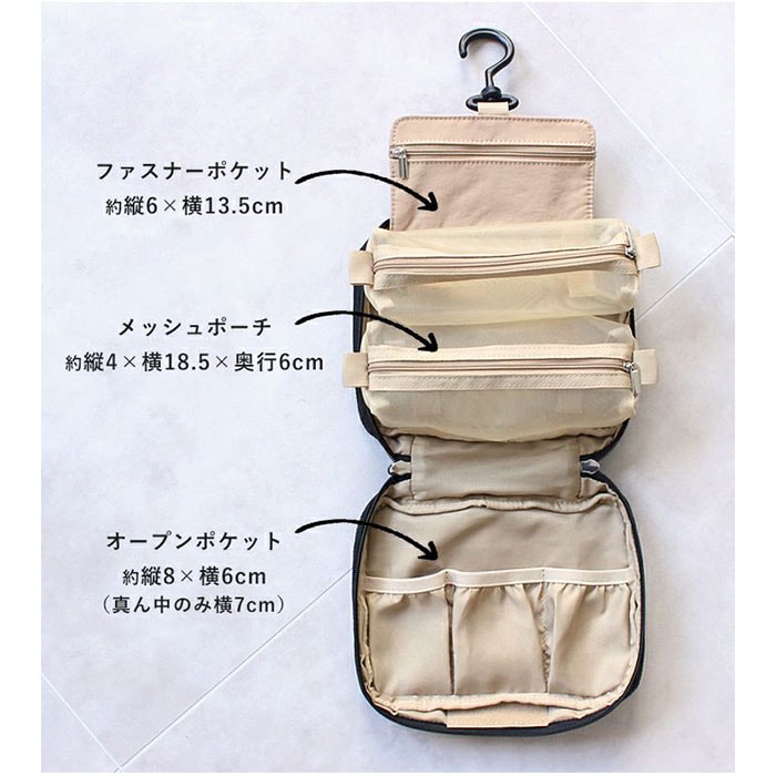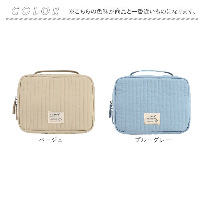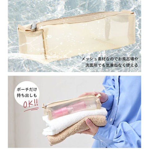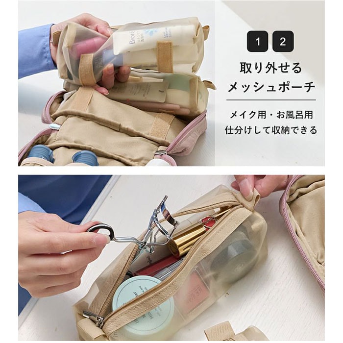 | 商品説明 | 【旅を快適にサポート!多機能ポーチ】トラベルアイテムを、仕分けてながらたっぷり収納!「LIZDAYS マルチポーチ」。【ポコポコ可愛いキルティング】ふんわり感のあるキルティングデザイン。シンプルで大人女子にぴったりの仕上がり。【水回りでも慌てない撥水性をプラス】サラリとしたナイロン素材に、水滴や汚れを弾く撥水加工済み。ちょこっと水がはねても大丈夫。(※)防水仕様ではありません。【スペースの限られた洗面でも快適】・360度回転式S字フックを使ってホテルの洗面台などに吊り下げれば、便利な壁掛け収納に。【自立させてテーブルでも使いやすく】反転させて、面ファスナー同士をくっつけると自立。取り出しやすく、場所を選ばない♪【ガバっと開いて出し入れスムーズ】左右どちらからも開くダブルファスナーで、180度オープン。使いたいアイテムが一目瞭然◎【コスメもスキンケア用品も一緒に】多くのポケットを装備。コスメはもちろんスキンケアのボトル類、歯ブラシなどもひとまとめ。【取り外し可能なメッシュポケット】通気性に優れた2つのメッシュポーチは、面ファスナー着脱。仕分けしやすく単体使いも。【程よくフィットするゴム口ポケット】ボトルやミニスプレーなどをIN。大きさに合わせて伸縮し、こぼれ落ちにくくすっきり収納。【迷子にならないファスナーポケット】替えのコンタクトや絆創膏、常備薬など!細々した小物を入れておけて便利。【手持ちできる軽やかなバッグ型】軽量で外側上部に持ち手付き。手に取りやすく、旅先の大浴場や温泉などへの移動もラクラク。【お気に入りを選べるカラー】ベーシックや柔らかなカラーに、ロゴタグをON。使う人を選ばない仕上がりで贈り物にも。【ポケット仕様】内側:メッシュポケット×2(取り外し可能)、ゴム口ポケット×3、ファスナーポケット×1 |