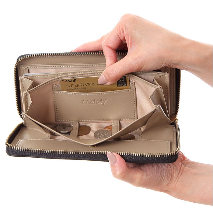 | 商品説明 | 【たっぷり入る大容量!】シンプルで使いやすい「Melody(メロディー) ギャルソン本革 長財布」が登場。【上品な印象の本革】シボ感のある牛革を使い、落ち着きのある仕上がりに。柔らかな質感で使うほどに味わいが増す。【ラウンドファスナー開口】開口部はラウンド型に大きく開くので、中身がひと目で確認できる!【見やすく収納&サッと取り出せる!】じゃばら式のカードポケットなど多数装備!ポイントカードやクレジットカードをすっきりと整理整頓。【小銭とレシートをパッと仕分け】小銭入れと直結しているポケットがあり、小銭やお札、レシートを一緒に入れると自動で分かれる♪【使いやすいBOX型小銭入れ】小銭入れはスナップボタン付きでガバッと大きく開くBOX型。お会計もスムーズ。【ユニセックス仕様】無駄のないシンプルなデザインと落ち着きのあるカラー。幅広い年代で使えるので、ギフトにもおすすめ。【ポケット仕様】外側:フリーポケット×1内側:BOX型小銭入れ×1、じゃばら式カード入れ×10、カードポケット×8、フリーポケット×6 |