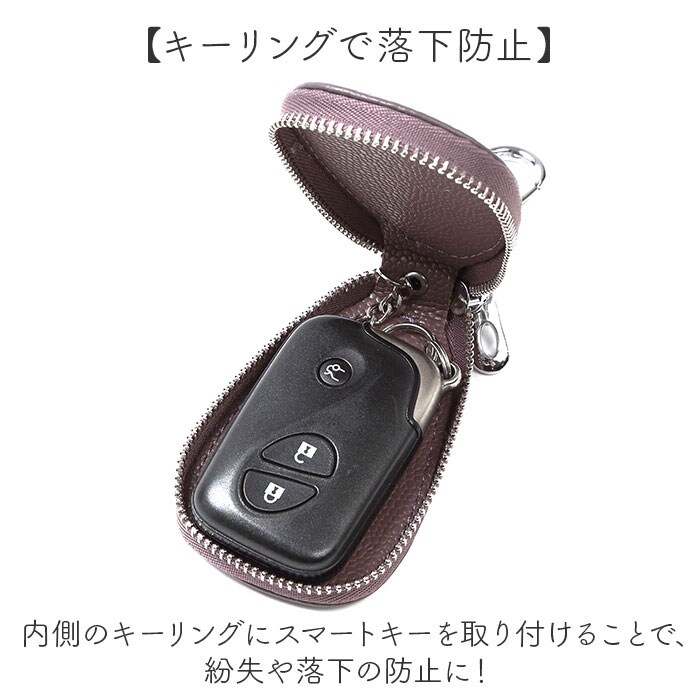 | 商品説明 | 【コンパクトに収納!】シンプルで使いやすい「Melody(メロディー) スマートキーケース」が登場。【上品な印象に】シボ感のある牛革を使い、落ち着きのある仕上がりに。柔らかな質感で使うほどに味わいが増す。【180度大きく開く!】ぐるっと大きく開くラウンドファスナーを採用。スマートキーの出し入れがスムーズ。【キーリングで落下防止】内側のキーリングにスマートキーを取り付けることで、紛失や落下の防止に!【カラビナで持ち運びスマート】・360度回転するナスカン。バッグやベルトループに取り付けられて持ち運びも楽ちん!【自宅の鍵用のケースにも♪】自宅の鍵や自転車の鍵などをキーリングに取り付ければ、普段使いのキーケースとしても活用OK!【ユニセックス仕様】無駄のないシンプルなデザインと落ち着きのあるカラー。幅広い年代で使えるので、ギフトにもおすすめ。 |