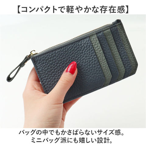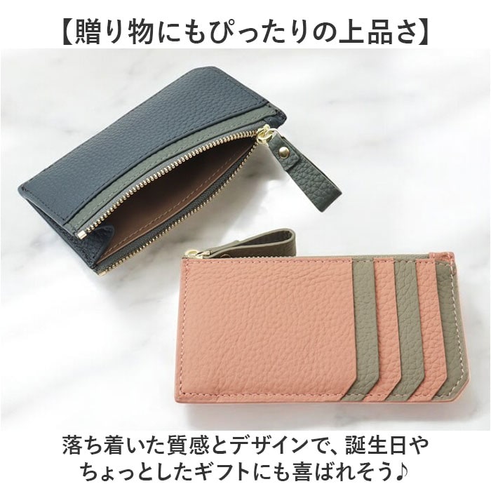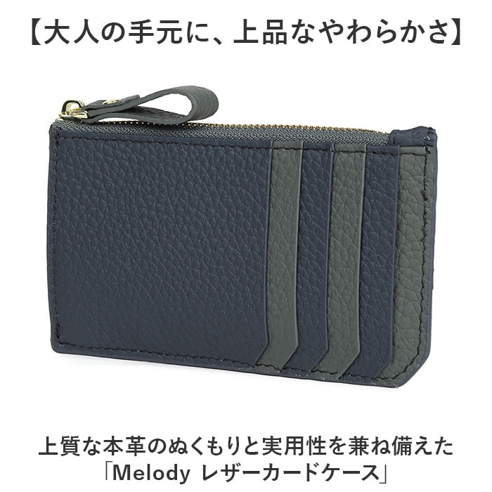 | 商品説明 | 【大人の手元に、上品なやわらかさ】上質な本革のぬくもりと実用性を兼ね備えた「Melody レザーカードケース」【手に吸い付くような柔らかレザー】シボ感のある牛革を使用。ふんわりとした手触りと手に馴染む心地よさが魅力。【スリムなのに頼れる収納力】中央に片マチ付きのファスナーポケット。両側にカード5枚とフリーポケット×1で整理上手に。【コンパクトで軽やかな存在感】バッグの中でもかさばらないサイズ感。ミニバッグ派にも嬉しい設計。【目を引くバイカラーの配色】異なるカラーの組み合わせがアクセントになった、大人の遊び心を感じる配色デザイン。【贈り物にもぴったりの上品さ】落ち着いた質感とデザインで、誕生日やちょっとしたギフトにも喜ばれそう♪ |
