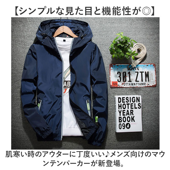 | 商品説明 | 【シンプルな見た目と機能性が◎】肌寒い時のアウターに丁度いい♪メンズ向けのマウンテンパーカーが新登場。【夜間でも活躍リフレクター付き】ファスナーや引手のテープに反射素材を使用。強い光を反射し、ピカッと周りへお知らせ☆【サッと羽織れる前開き】ファスナータイプの前開きで必要な時にサッと羽織れるのが嬉しいポイント。【顔をすっぽり覆うフード】フードは被った時に顔周りをすっぽり覆う作り◎冷たい風からしっかりガード。【フードが落ちにくいコード付き】襟元のコードを絞れば、顔周りのサイズにフィット♪風が吹いてもズレ落ちにくい。【ちょっとした小物入れに】ハンカチなどちょっとした小物が入るポケットを配置。さらに小物が落ちないファスナー付き。【様々なシーンで使える】インナーにもアウターにも使える薄手の生地。軽い着心地で軽いスポーツ時にも最適☆ |