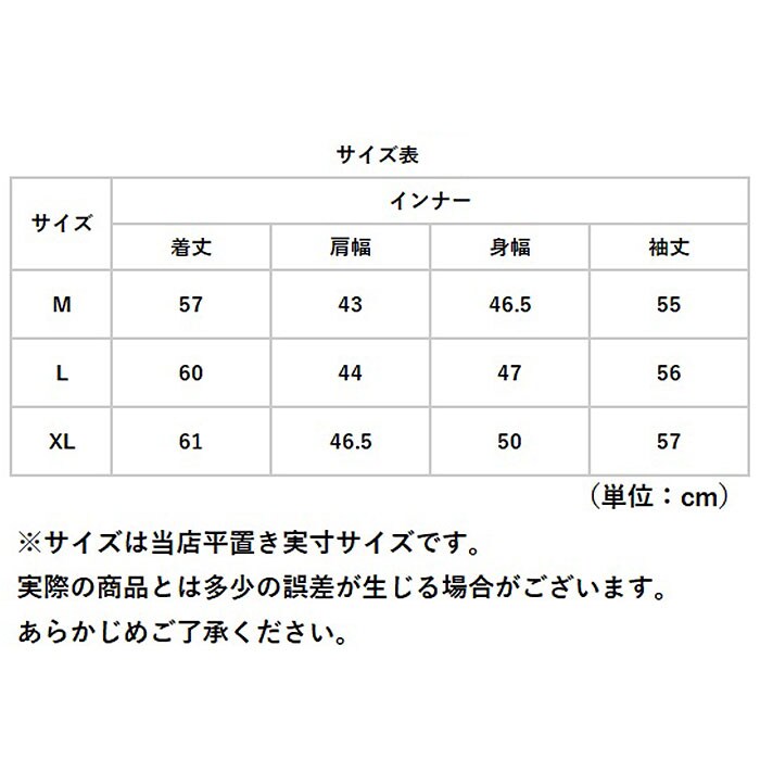 | サイズ | [メンズ] ・Mサイズ ・Lサイズ ・XLサイズ ※サイズについて詳細は、商品画像の中にあるサイズ表をご覧くださいませ。 |