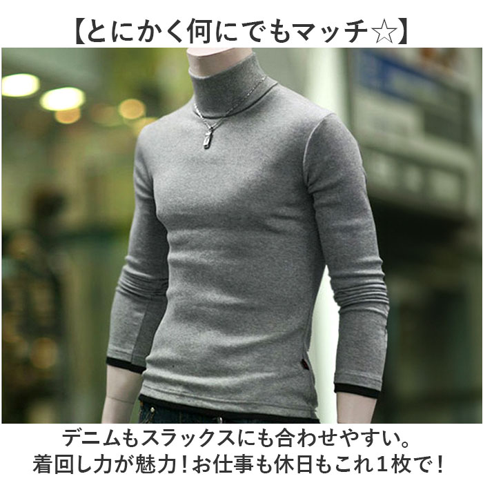 | 商品説明 | 【重ね着風でおしゃれな着こなしに☆】秋冬にヘビロテ間違いなしの「メンズ タートルネック」が登場。【秋冬定番のシンプルタートル】カジュアルにもキレイめにもマッチする、シンプルなタートルネック。定番だから使いやすい◎【チクチクしない柔らかな生地♪】着ぶくれしない厚さなのに、柔らかくあたたかい着心地。ストレッチ性もあり、着心地がラク!【シンプルなのにおしゃれ見え☆】無地にレイヤード風カラーデザインをプラス。シンプルだけど単調に見えないのがポイント。【とにかく何にでもマッチ☆】デニムもスラックスにも合わせやすい。着回し力が魅力!お仕事も休日もこれ1枚で! |