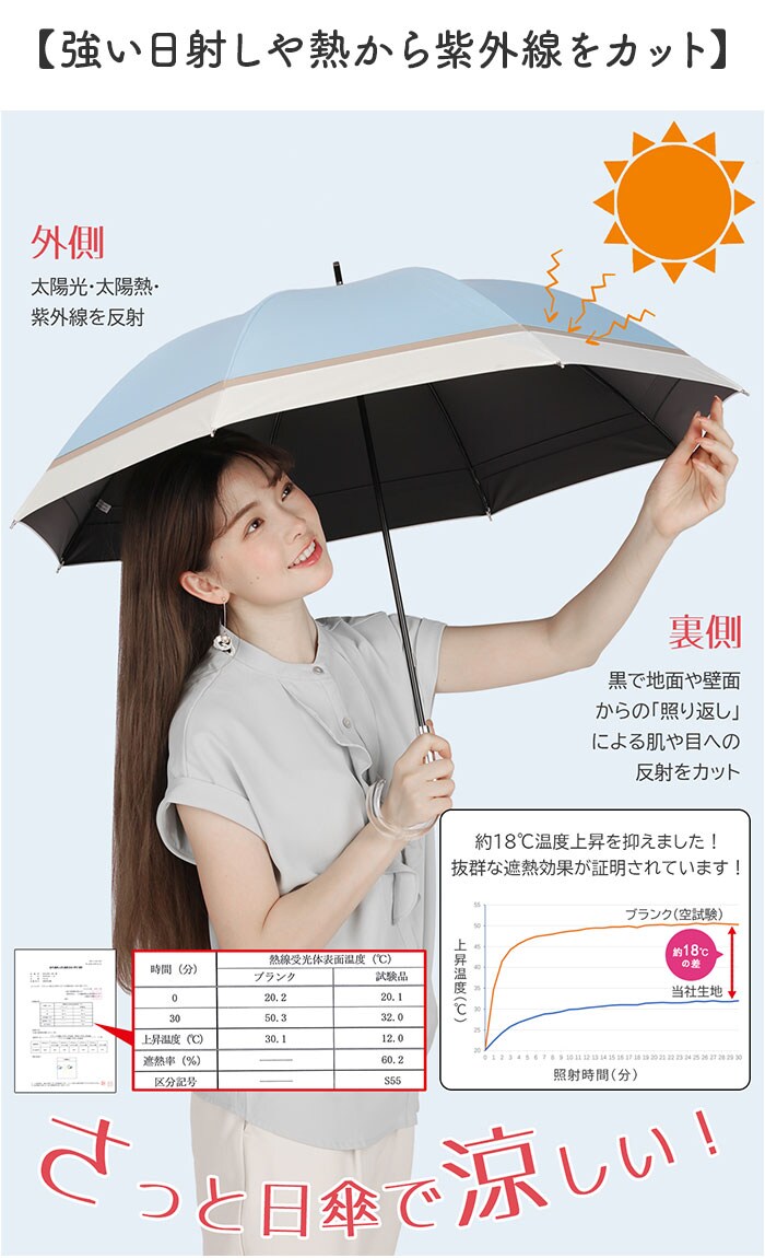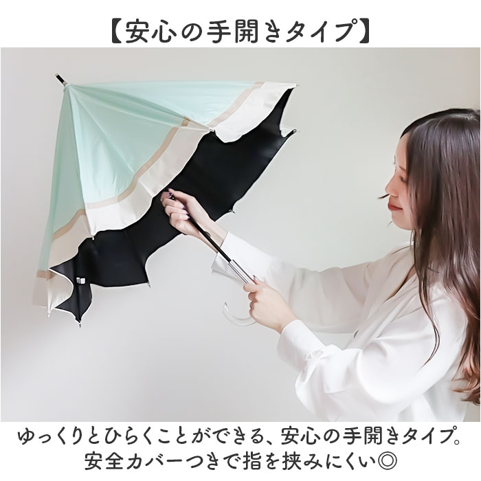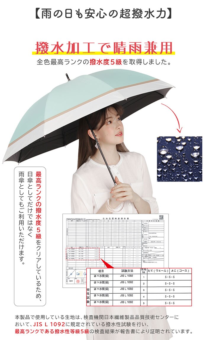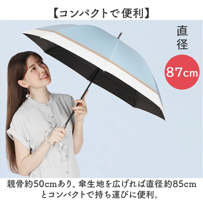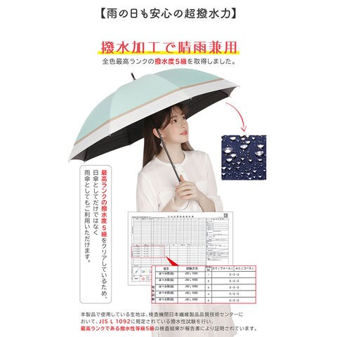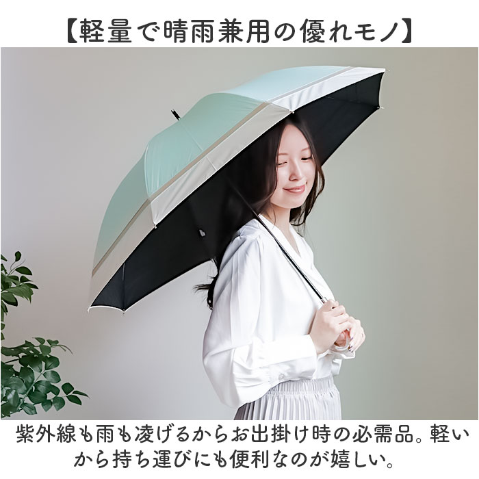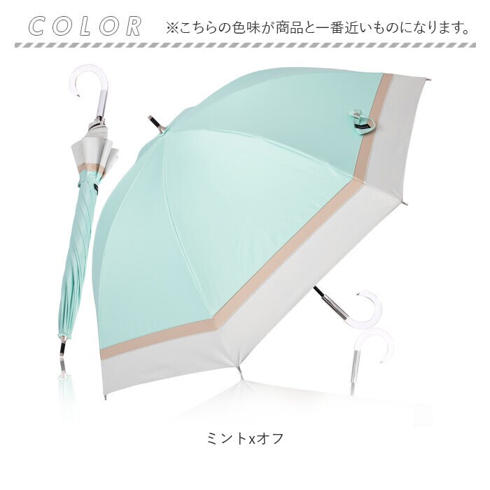 | 商品説明 | 【雨の日も爽やかに気分をあげよう♪】上品で高級感のあるトライカラーとクリアハンドルで雨の日も気分を爽やかにあげてくれる♪【軽量で晴雨兼用の優れモノ】紫外線も雨も凌げるからお出掛け時の必需品。軽いから持ち運びにも便利なのが嬉しい。【傘の下はまるで木陰のような涼しさ】遮光率100%で紫外線カットし、強い日射しや熱をしっかりと遮る。【強い日射しや熱から紫外線をカット】紫外線遮蔽率100%で気になるシミ予防から暑さを防ぐ遮熱効果もあり♪【反射光を防いでまぶしさを軽減】内側をブラックコーティングにすることで、反射光をブロックしまぶしさを軽減。【夏の紫外線対策や熱中症対策に】安心のUVカット100%で夏の紫外線対策だけでなく、熱中症対策にも活躍。【雨の日も安心の超撥水力】撥水等級5級の最高ランクで、急な雨でもしっかり防ぐ撥水力。【コンパクトで便利】親骨約50cmあり、傘生地を広げれば直径約85cmとコンパクトで持ち運びに便利。【安心の手開きタイプ】ゆっくりとひらくことができる、安心の手開きタイプ。安全カバーつきで指を挟みにくい◎【スナップボタンタイプ】傘生地がスムーズにまとまる、スナップボタンタイプの留めバンドを採用。 |