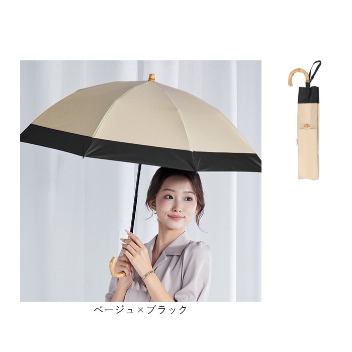 nino bicolor 2段式折りたたみ日傘【ベージュ×オフ】