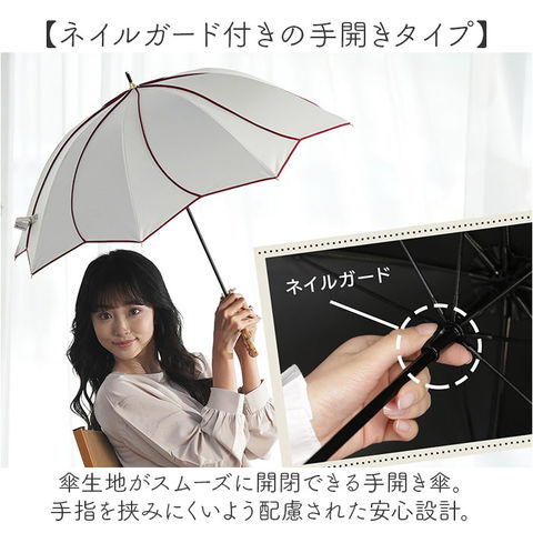 | 商品説明 | 【おしゃれに持ち歩けて機能性も抜群】暑い日のお出かけに心強い相棒を♪colon AMERI ラタン深張花びらショート丈日傘。【可愛らしいフラワーシルエット】花びらに包まれるようなデザイン。上品な印象で、華やかな気分に♪【一級遮光で晴れた日の味方】遮光率、UVカット率100%!丸みのある深張り仕様で、気になる紫外線をしっかりカット。【まるで日陰のような涼しさを体感】光を反射させて温度の上昇を防ぐ遮熱効果も高く、暑い日の熱中症予防に。(※1)内側ブラックカラーで、照り返しによる肌や目への反射もカットします。【雨粒をサッと弾く超撥水加工】撥水度は最高ランクの5級。雨傘としても使えて、お天気が不安定な日も安心。(※2)激しい雨の際は、雨水が染みることがあるのでご注意ください。【ネイルガード付きの手開きタイプ】傘生地がスムーズに開閉できる手開き傘。手指を挟みにくいよう配慮された安心設計。【サクッと留められるボタン式バンド】傘生地を留めるバンドは、バチンっと留めやすいスナップボタンタイプ。嬉しい2段階式。【丈夫で風合いのあるハンドル】ナチュラル感たっぷりなハンドル。耐水性があり、雨に濡れても変形しにくいバンブー素材。【お気に入りを選べるカラー】年代問わず使いやすい、柔らかなカラー。オン・オフ問わず大活躍。 |