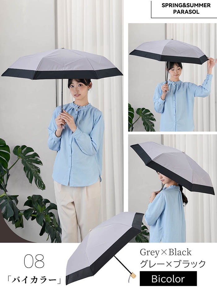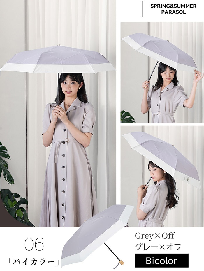 stella 形状安定折りたたみ日傘【グレーxオフ】