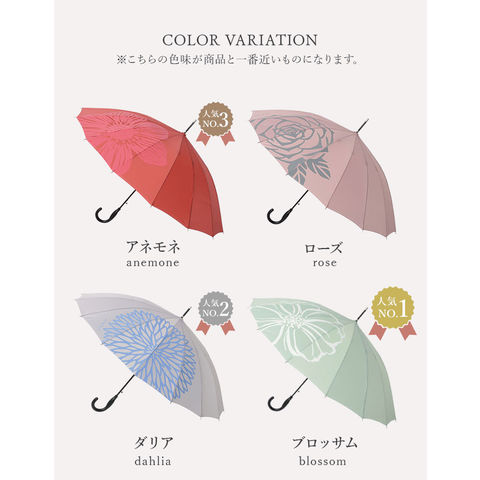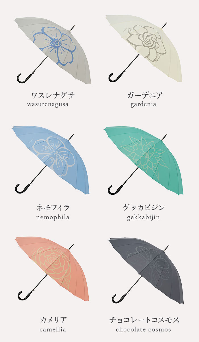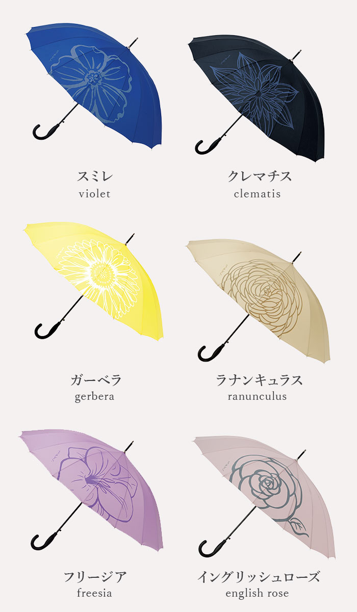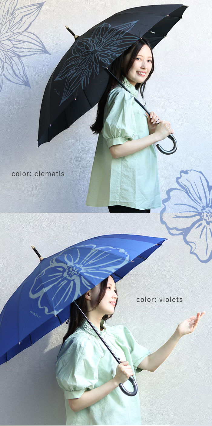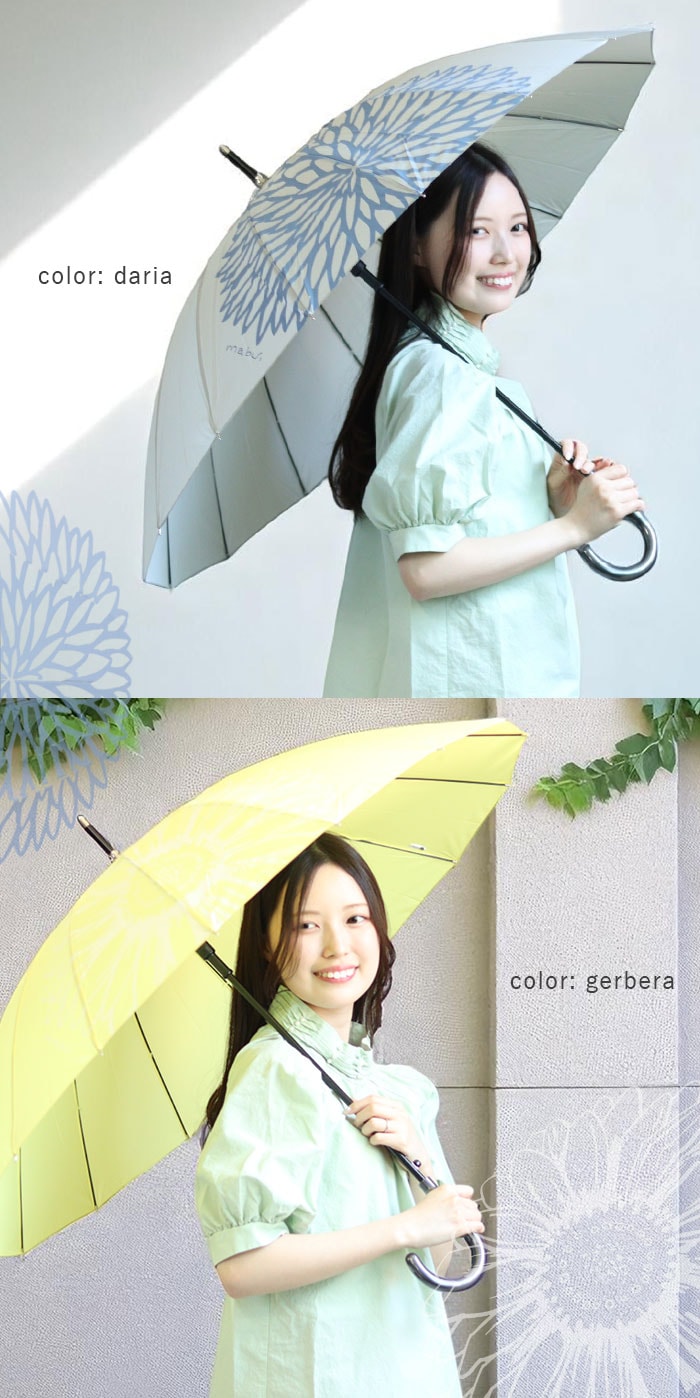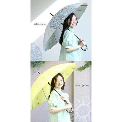 | 商品説明 | 晴れの日も雨の日も快適に過ごしていくために、レイングッズの機能性とデザインにこだわったシリーズ「mabu」より、丈夫で使いやすい16本骨アンブレラ「ベーシックジャンプ16」がリニューアルして登場しました。淡く優しい色調の傘生地に、大きな花柄のイラストが涼し気に広がって、雨の日のお出かけをスタイリッシュに彩ります。親骨には軽量で折れにくいグラスファイバー骨を使用し、約435gの軽さを実現。さらに、持ち手の形状とデザインにこだわり、持ちやすさと握りやすさを追求しています。紫外線遮蔽率90%以上で、雨傘としても日傘としてもご使用が可能な晴雨兼用モデルです。 |