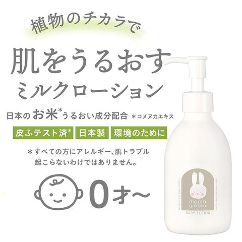 | 商品説明 | 子供たちにすこやかに育ってほしい・・・。mamagokoro(ままごころ)は、ママの気持ちから生まれたブランド。ベビー全身シャンプー・ベビーミルクローションの2点を詰め合わせた、mamagokoroのベビーケアギフト。ベビー全身シャンプー・・・うるおいを守りながら、しっとり洗いあげる全身洗浄料。日本のお米のうるおい成分を配合し、肌荒れ・あせもを防ぎながら、なめらかな肌に導く。ベビーミルクローション・・・さらっと伸びて、みずみずしくうるおう保湿ローション。肌が本来もっているチカラをサポートし、健やかな肌を育むオールインワンローション。mamagokoroは、すべての製品が植物由来98%以上。日本人の身体をつくる源であるお米に着目し、赤ちゃんに負担が少なく、植物のチカラを引きだす処方で肌をしっかり保湿。そのほか、素肌をサポートするカミツレ花エキス、肌荒れをケアする桃の葉エキス、シュガースクワラン・天然精油を配合。食物アレルゲン由来成分を不使用、さらに7つの成分を無添加にすることで、生まれたての赤ちゃんの肌や大人の敏感肌にも使える優しい仕様が持ち味。(※7つの無添加とは・・・鉱物油・石油系界面活性剤・合成香料・合成着色料・シリコン・パラベン・フェノキシエタノール不使用であることを示しています)赤ちゃんが生まれた方への出産ギフトや、お孫さんへのプレゼントに最適。 |