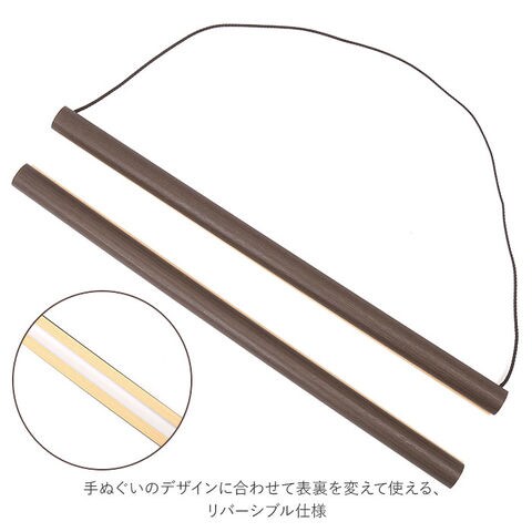 | 注意点 | 紙製の木目調フィルムを使用しておりますので、棒の角部分を過度にこすると、色落ちする場合がございます。本製品は手拭いを展示する目的で制作しております。それ以外の用途にはご使用しないでください。カメラやモニターの性質により、画像と実物の色の違いがある場合がございますのでご理解願います。 |