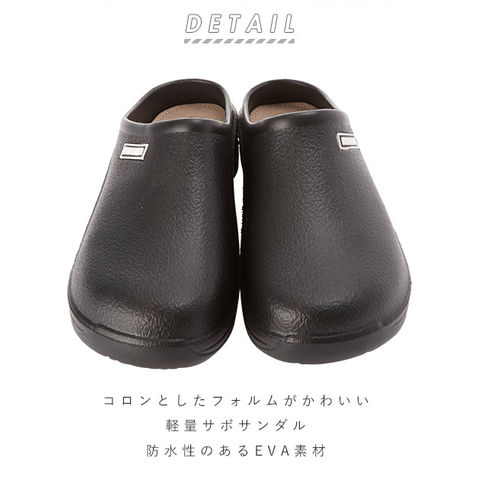 | 商品説明 | シンプルなデザインで、まるいフォルムがかわいい!ガーデニングにも使える軽量サボサンダルです。防水性のあるEVAを使っているので、お手入れが簡単♪厚底ソールで疲れにくく歩きやすいのもポイント!普段使いからオフィス用まで幅広く使えます。 |