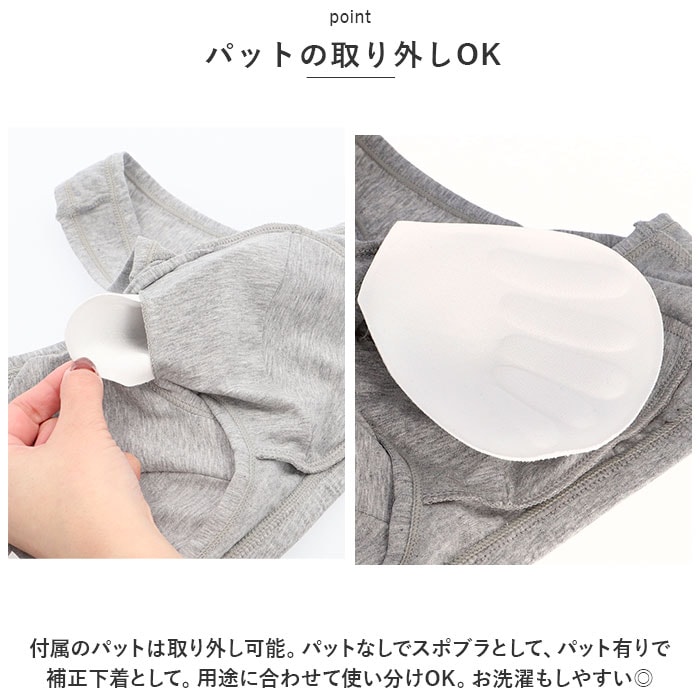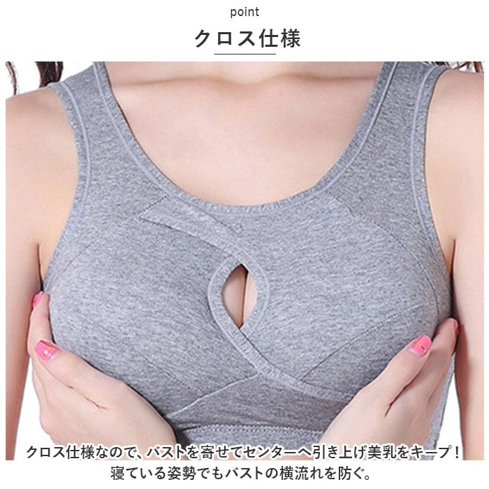 | 商品説明 | ノンワイヤーで楽ちんな着け心地♪バストの横流れを防いで、寝ている間もバストケア。「ナイトブラ」が登場。【立体構造】ほど良い着圧で、脇肉をホールド!立体構造なのでバストにフィットし、快適な着け心地◎【クロス仕様】クロス仕様なので、バストを寄せてセンターへ引き上げ美乳をキープ!寝ている姿勢でもバストの横流れを防ぐ。【こだわりの着け心地】楽ちんな着け心地にこだわったノンワイヤータイプ。ストラップは幅広なので肩への食い込みもしにくく、リラックスタイムを邪魔しない♪【パットの取り外しOK】付属のパットは取り外し可能。パットなしでスポブラとして、パット有りで補正下着として。用途に合わせて使い分けOK。お洗濯もしやすい◎【選べるカラー】ベーシックカラーから可愛いカラーまで、お好みの色が選べる!洗い替え用に色違いで揃えるのもオススメ。※他ページにて2枚セットも販売中☆(※ストアの検索窓に商品コード「mama800set2」を入力してご覧ください。) |