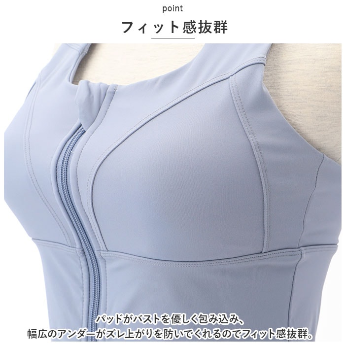 | 商品説明 | ノンワイヤーだけどしっかりホールド!着心地抜群のスポーツブラが新登場。【前開きタイプ】前開きのファスナータイプ。ファスナー部分はカバー付きで肌にあたりにくく、引き手を持つとロックが解除される設計に。【フィット感抜群】パッドがバストを優しく包み込み、幅広のアンダーがズレ上がりを防いでくれるのでフィット感抜群。【スポーツシーンに最適】肩甲骨を動かしやすいバッククロスタイプ!安定感もばっちり。【サラッとした着心地】素材にはサラッとした肌触りの生地を使用。伸縮性もあり動きやすさを追求した着心地の良さ。【吸水速乾性のある生地】汗をすばやく吸収し、乾きやすい素材なのでスポーツ時でも快適。【お手入れしやすい】洗濯機で簡単に洗えるのも魅力。お手入れが簡単なので、毎日の使用にも最適。【様々なシーンで】ヨガやフィットネス、自宅でのエクササイズなどで大活躍。 |