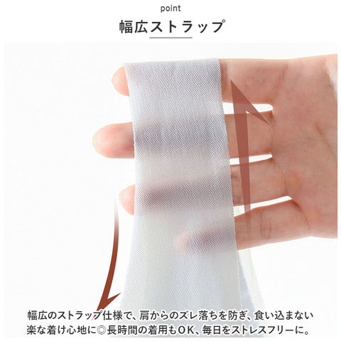 | 商品説明 | 極薄タイプの生地で、まるで着けてない感覚◎涼しい着け心地で暑い季節にぴったり!「冷感ブラジャー ノンワイヤー」が登場。【薄い生地を採用】極薄の生地を採用。まるで着けていないかのような楽な着心地を実現。冷感タイプなので、暑い季節も快適に。肌に馴染む薄さで、後ろ姿もすっきり決まる◎【ノンワイヤー&ノンホック】楽な着け心地にこだわったノンワイヤー&ノンホック仕様。スポーツブラタイプなので、着脱がラクチン!スポーツシーンやお家でのリラックスタイムにぴったり!【通気性◎】パッド部分も薄めに設計。胸をほど良くホールドしながら、通気性もバッチリ。パッドの下部分には穴を特殊加工し、ムレを軽減。【幅広ストラップ】幅広のストラップ仕様で、肩からのズレ落ちを防ぎ、食い込まない楽な着け心地に◎長時間の着用もOK、毎日をストレスフリーに。【ひびきにくい】薄い生地感と縫い目が少ない仕様で、Tシャツなどのひびきが心配なお洋服でも、気にせずに着用できるのも嬉しいポイント。【嬉しい軽量設計】一般的なブラの半分の重さ!驚きの軽量設計で、下着の苦しさを感じさせない魅力的なアイテム。【取り外し可能のパッド】パッドは取り外しOK。お洗濯がしやすく、お手入れが簡単でいつでも清潔が保てる◎【選べるカラー】ベーシックカラーのラインナップ。お好みのカラーをチョイスして、お気に入りのインナーで気分をUPさせよう♪ |