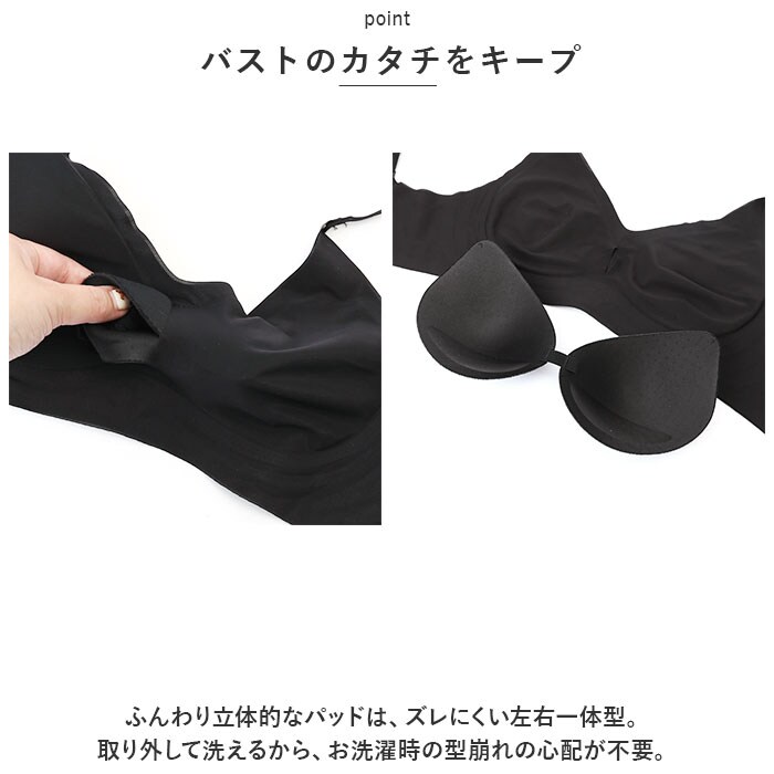 | 商品説明 | バストを心地よくホールド!付けている感が少ない超薄ブラが新登場。【ストレスフリーな付け心地】窮屈感が苦手な方にぴったり。締めつけ感のないノンワイヤー仕様ながら、バストまわりを包み込んでズレにくいつくり。【響きにくい超薄タイプ】とっても薄くて軽いブラ。トップスに響きにくく、肩にかかる負担も軽減。【バストのカタチをキープ】ふんわり立体的なパッドは、ズレにくい左右一体型。取り外して洗えるから、お洗濯時の型崩れの心配が不要。【サラッと快適】滑らかな手触りで、汗ばむ季節もムレにくい!【4段階サイズ調節OK】背面ホックで簡単着脱。自分サイズにフィット。【使い勝手ばっちり】デイリー使いはもちろん、ナイトブラやスポーツブラとしても活躍。 |