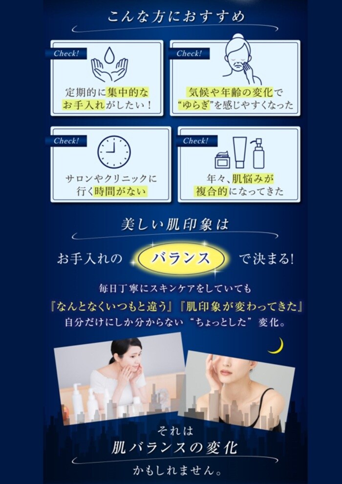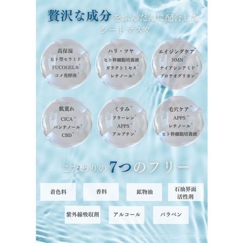 | 商品説明 | MARI LANの美容理論が詰まった、至福のシートマスク。「保湿」×「摩擦レス」を叶えるシートマスクは、肌に優しく、しっとりとしたうるおい感を与えます。厳選した美容成分が配合され、心地よい使用感と共に、日常のお手入れに特別感をプラス。肌にフィットするシートは、サロン帰りのようなリラックスした時間を演出します。また、旭化成が生産する高品質なキュプラ長繊維不織ベンリーゼを使用し、肌への優しさと安心感を追求。個包装タイプで、衛生的にお使いいただけます。このシートマスクは、日々のスキンケアの一環として、肌のうるおい感を高め、なめらかな肌触りをサポートします。 |
