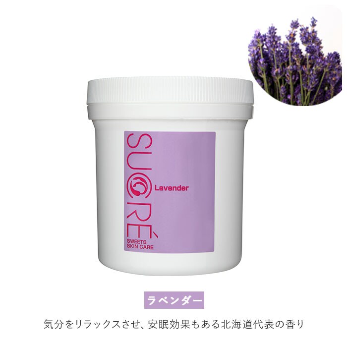| 商品説明 | 100%食用由来の天然成分配合の、無添加スキンケア♪「スイーツスキンケア シュクレ Face&Body 200g」が登場。遺伝子組み換えされていない北海道産のてんさい糖と、植物性オイルを使用。砂糖自体の防腐力が防腐剤の役割を果たし、防腐剤、安定剤などは不使用。100%食品由来の天然成分だから、万が一口の中に入っても安心◎使い方はカンタン、濡れたお肌に優しく馴染ませてサッと洗い流すだけ♪全身に使うことができるのも魅力の1つ。てんさい糖がお肌の水分と皮脂のバランスを整え、しっかりと保湿!さらにてんさい糖1粒1粒にコーティングしたオイルが、クッションの役割を果たすことで肌への刺激が少なく、敏感肌の方でも安心して使えるのが嬉しい。天然精油配合の5つの香りをラインナップ!シトラス…もぎたてのフルーツのようなみずみずしい、甘い柑橘系の香り。ラベンダー…気分をリラックスさせ、安眠効果もある北海道代表の香り。バニラ…遊び心を感じさせる甘い香り。ハッカ…さっぱり気分でリフレッシュできる、ひんやりとした清涼感のある香り。ローズマリー…すーっと染みわたるような清涼感のある香り。 |