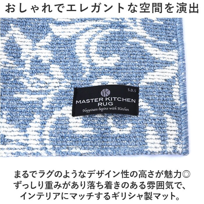 | 商品説明 | リビングラグのような、おしゃれデザイン!「スターキッチンラグ ロングマット」150cmタイプが新登場。【おしゃれでエレガントな空間を演出】まるでラグのようなデザイン性の高さが魅力◎ずっしり重みがあり落ち着きのある雰囲気で、インテリアにマッチするギリシャ製マット。【丸洗いできてお手入れ簡単】汚れが気になったら、洗濯ネットに入れて丸洗いOK。いつも清潔をキープ。(※弱モードで単独洗いしてください。ドラム式洗濯機では洗濯や脱水ができない場合ごございます。)【糸くずごみが出にくく快適】目の詰まったループ状の糸を使った生地。遊び毛が出にくく、掃除機をかける際やお洗濯の時も、細かな糸くずのゴミを軽減。【滑りにくい安心・安全設計】裏面には滑り止め加工済み。いや~なズレもガードし、キッチンでも安心して作業に集中。【床暖房対応でオールシーズン重宝】引き出しにも引っ掛かりにくい、約8mmほどのフラットな厚み。床暖房にも対応しているから、季節ごとに変える手間なくシーズンレスで活躍。【大人な印象のモダンデザイン】空間に溶け込みつつ、程よいアクセントになるデザインをラインナップ。お好みに合わせてチョイスして♪サッとまとまるバンドが付属。 |
