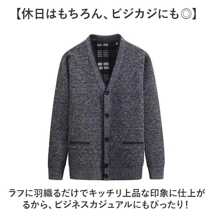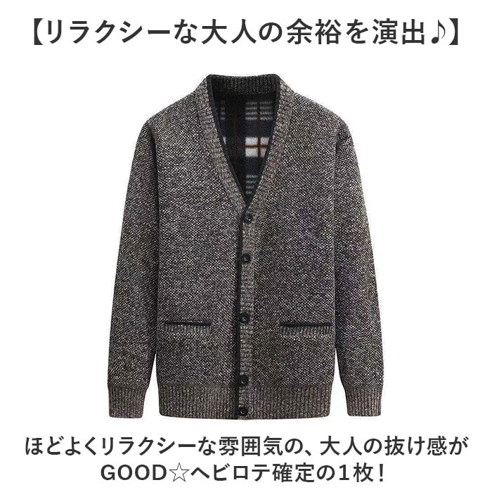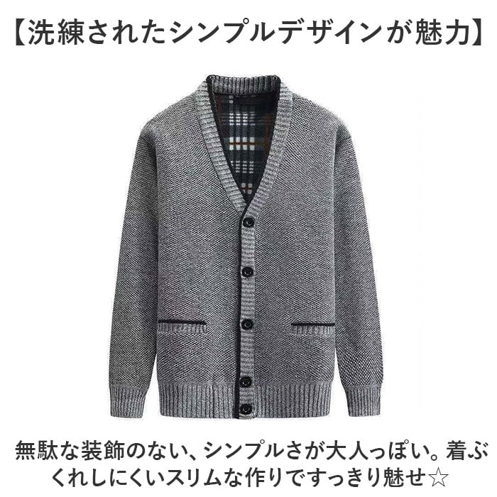 | 商品説明 | 【大人シンプルな着こなしに☆】裏起毛仕様で見た目以上のあたたかさ♪ ニットカーディガン メンズが登場。【洗練されたシンプルデザインが魅力】無駄な装飾のない、シンプルさが大人っぽい。着ぶくれしにくいスリムな作りですっきり魅せ☆【休日はもちろん、ビジカジにも◎】ラフに羽織るだけでキッチリ上品な印象に仕上がるから、ビジネスカジュアルにもぴったり!【見た目以上のあたたかさが魅力】ニット生地にフリースの裏起毛をプラス。体温を逃さずに、ぬくぬくあたたかい着心地をキープ【学生さんから大人まで似合うニット】定番のニットデザインなので、学生服やスーツともマッチ。1枚は欲しい、着回しの効くニット【リラクシーな大人の余裕を演出♪】ほどよくリラクシーな雰囲気の、大人の抜け感がGOOD☆ヘビロテ確定の1枚!【ポケットがアクセント&便利】スマホやちょっとした小物を入れられる、ポケットを2つ配置。お家でも会社でも快適♪ |