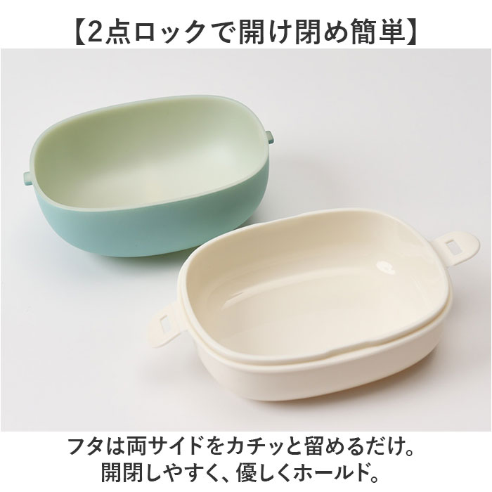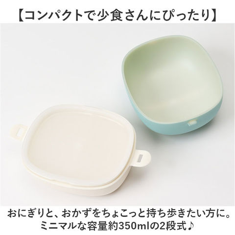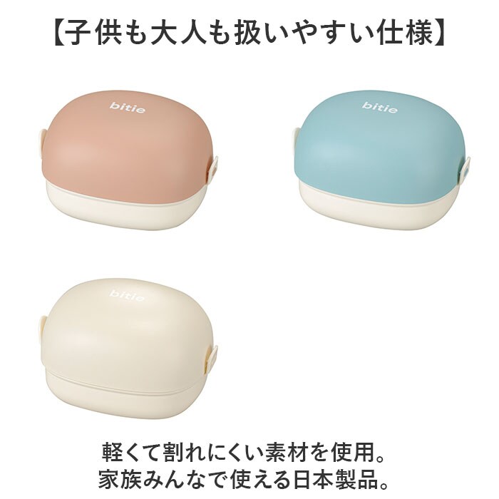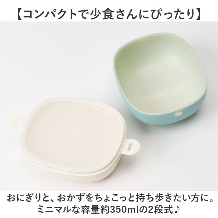 | 商品説明 | 【少量ランチの持ち歩きに最適】カバンに収納しやすく、スマートに持ち運べる!「bitie おにぎりケース」が新登場。【コンパクトで少食さんにぴったり】おにぎりと、おかずをちょこっと持ち歩きたい方に。ミニマルな容量約350mlの2段式♪【簡単に詰め分けできて便利】下段に少量のおかず、上段(中蓋上)に俵型のおにぎりが2個ほど入るサイズ。【2点ロックで開け閉め簡単】フタは両サイドをカチッと留めるだけ。開閉しやすく、優しくホールド。【レンジ対応!熱々おかずが復活】中蓋を外して電子レンジでの温めOK。オフィスでも温かいランチを楽しめちゃう!【食洗機が使えてお手入れラクラク】中蓋を除いて食洗機が使用可能。お手入れしやすく、忙しい毎日の味方◎【子供も大人も扱いやすい仕様】軽くて割れにくい素材を使用。家族みんなで使える日本製品。【可愛らしいパステルカラー】性別や年代問わず使いやすい、柔らかなマットカラー。家族色違いで揃えるのもおすすめ。 |