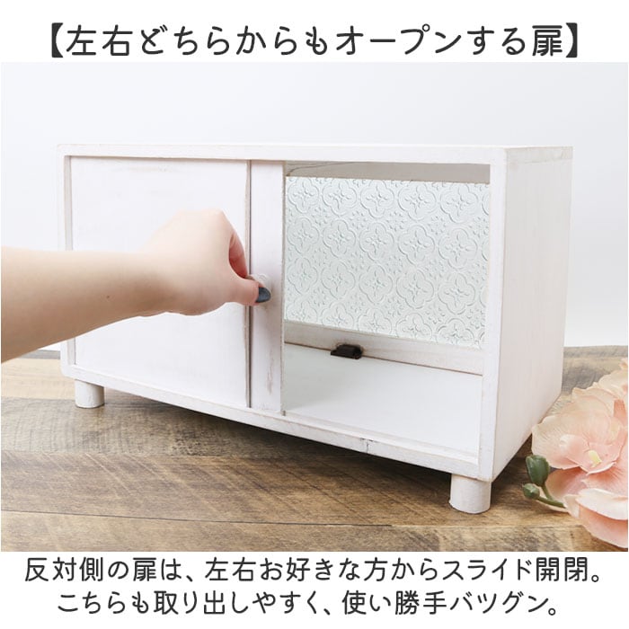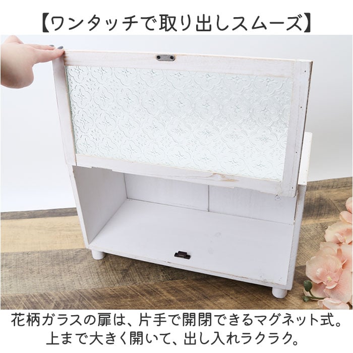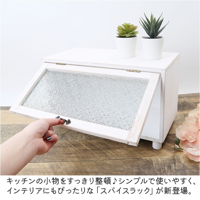 | 商品説明 | キッチンの小物をすっきり整頓♪シンプルで使いやすく、インテリアにもぴったりな「スパイスラック」が新登場。【レトロ&ナチュラルで空間にマッチ】自然な風合いのウッド素材と花柄ガラスの組み合わせ♪温かみがあり、キッチンに馴染むデザイン。【どちらからも取り出せる両面扉】両面それぞれに異なる扉を装備。両側から取り出せて便利&お好みやシーンに合わせて、正面を選べるのが嬉しい!【ワンタッチで取り出しスムーズ】花柄ガラスの扉は、片手で開閉できるマグネット式。上まで大きく開いて、出し入れラクラク。【左右どちらからもオープンする扉】反対側の扉は、左右お好きな方からスライド開閉。こちらも取り出しやすく、使い勝手バツグン。【中身を隠せて急な来客も安心】程よく隠せるガラス扉と、しっかり隠せるスライド扉。ゴチャ付いてしまっていても、外からは見えにくい仕様。【雑多な印象がグッとおしゃれに】スパイスはもちろん、お薬やお茶のストックなどを収納するだけで、雰囲気を格上げ!【デスク上の小物収納にもおすすめ】ステーショナリーやモバイルアイテムなど、デスクの上で散らかりがちな小物の収納にも重宝。 |