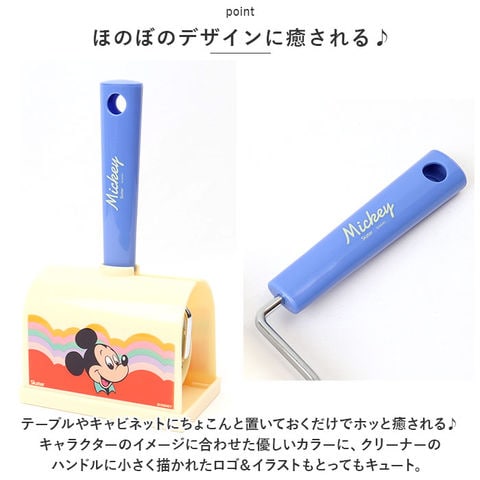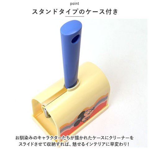 | 商品説明 | ちょこっとしたお掃除に、サッとコロがして使える!大人気キャラクターの絵柄が可愛い「ケース付き粘着クリーナー」【サッと使えるミニサイズ】ソファやカーペットの上で気になる小さなゴミや、お出掛け前のお洋服のホコリ取りにササっと使える、ミニサイズのローラー粘着クリーナー。【スタンドタイプのケース付き】お馴染みのキャラクターたちが描かれたケースにクリーナーをスライドさせて収納すれば、魅せるインテリアに早変わり!【すぐに使える粘着テープ付き】粘着テープが1ロール付属しているので、届いたらすぐに使えちゃうのも嬉しいポイント。(※取り換え用ロールは、雑貨店やホームセンターで販売されている横幅:約80mm×紙芯内径38mmのものをお使いください。)【ほのぼのデザインに癒される♪】テーブルやキャビネットにちょこんと置いておくだけでホッと癒される♪キャラクターのイメージに合わせた優しいカラーに、クリーナーのハンドルに小さく描かれたロゴ&イラストもとってもキュート。 |