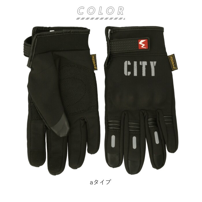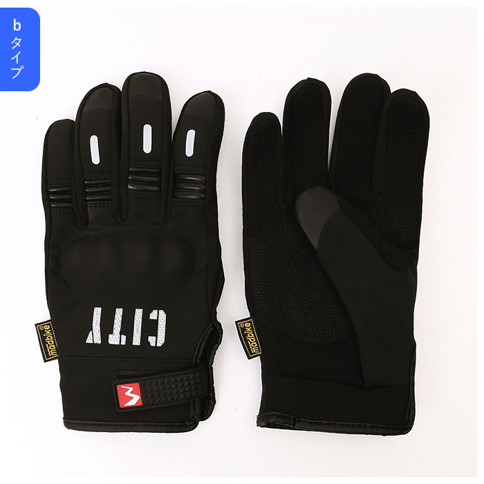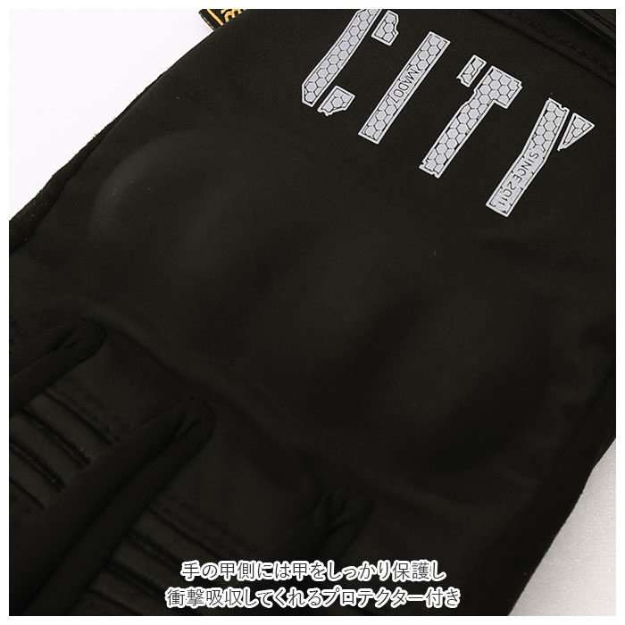 | 商品説明 | 防寒と撥水性を兼ね備えた多機能なバイクグローブが新登場。aタイプは手袋の裏地が起毛素材になった秋冬仕様。bタイプは通気性の良い素材を採用した春夏仕様。手のひら側には滑り止め加工を施した安心な設計。手の甲側には甲をしっかり保護し衝撃吸収してくれるプロテクター付き。親指、人差し指、中指の指先部分はスマホタッチが可能な仕様。手袋を外さずにスマホの操作が出来る。手袋表面のCITYロゴと人指し指、中指、薬指部分には光を反射するテープ付きだから夜間の使用にも最適。手首に付いている面ファスナーで手首のフィット感を調節可能。ツーリング時だけでなく、ハイキングや登山などで活躍するアイテム。 |