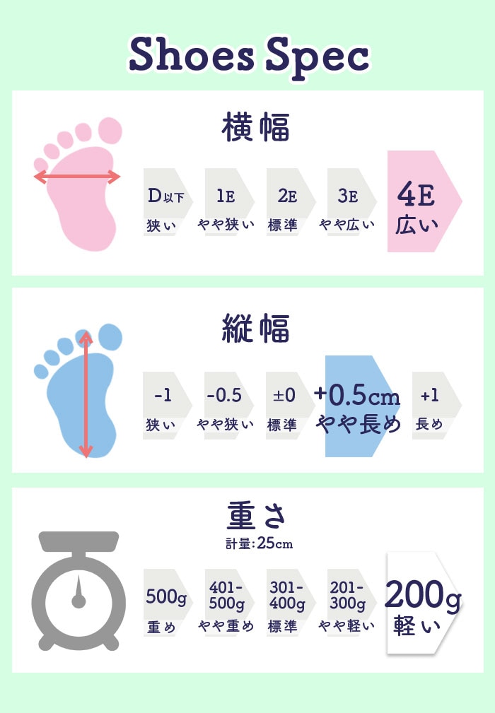 | 重量 | [片足] 約193g [両足(1足)]約387g ※サイズ25cmでの計測値です。 |