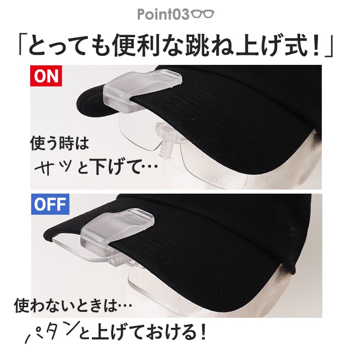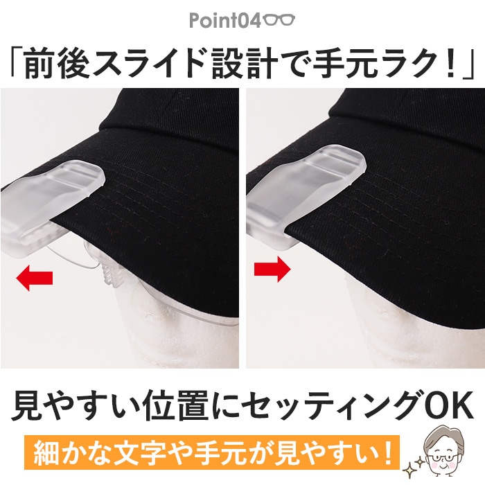 | 商品説明 | 【帽子に装着できる老眼鏡!】外でも、買い物中でも、サッと見える「冒険王 老眼屋 ネオキャップシニア」が登場。【両手が自由に使える老眼サポート】帽子のツバにワンタッチで装着!ポケットもバッグもかさばらない新しい老眼スタイル。【新型ギアクリップでフィット感UP!】角度も距離も自分好みに調整OK。見たいものにピタリと合う快適な視界。【跳ね上げ式でサッとON・OFF】使わないときはパタンと上げておけるから、見た目すっきり。外出時にも安心♪【前後スライド設計で手元ラクラク】細かな文字も、値札も、地図もくっきり。お出かけ先でもストレスフリー。【重さゼロ感覚の軽やか装着】帽子と一体だからズレ知らず!装着していることを忘れる軽やかさ。【持ち歩きやすいコンパクトサイズ】ポケットにもすっと収まり携帯性も◎【見え方に合わせて選べる4段階】・+1.50、+2.00、+2.50、+3.00の4段階。目の状態に合わせて選べる安心のラインナップ。【シンプルデザインで男女兼用】どんな帽子にもなじむナチュラル仕様。ご夫婦でシェアもおすすめ。 |