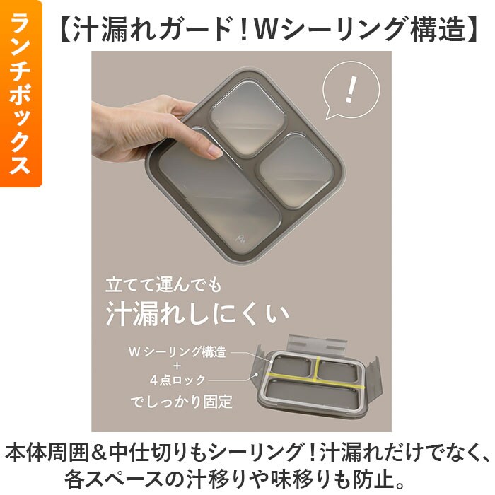 | 商品説明 | 【毎日のお弁当を快適に持ち運べる!】薄型弁当箱500ml「Mee by FOODMAN」&ランチラッパー2点セット。《薄型弁当箱 500ml》【バッグにすっぽり持ち運びスマート】厚みは約3.5cm、カバンに立てて収納。ランチトートを別で持ち歩かなくてもOK。【汁漏れガード!Wシーリング構造】本体周囲&中仕切りもシーリング!汁漏れだけでなく、各スペースの汁移りや味移りも防止。【ふわっと盛っておいしさアップ】本体から上にはみ出た分もしっかり入る、ドーム形状の蓋。押し潰れを防いで見た目もキレイ♪【盛り付け簡単◎ワンプレート設計】一体型固定の中仕切りに、食材を分けて詰めるだけ。悩むことなく楽しく盛り付け☆【OLさんも満足の500mlサイズ】コンパクトなフォルムだけど、容量はしっかりと。お茶碗約2.7杯分が入るサイズ感。(※)お茶碗1杯を約180mlとして計算した場合の容量です。【見栄えがアップするホワイトカラー】内側器部分は、鮮やかな食材の色を際立てる白色。ワンプレートディッシュのような仕上がり。【食べやすく洗いやすい丸型コーナー】おかずもご飯もすくいやすい!汚れも溜まりにくく、洗浄がラクラク。【一体パッキンで取り外す手間いらず】蓋とパッキンが一体成形。蓋との間に汚れが入りにくく、洗う時もパッキンはそのままでOK。【オフィスでも熱々ごはんを味わえる】蓋を外して電子レンジでの温め可能。温め直せば、いつでもあったかごはんを楽しめる!【食洗機OKでお手入れ簡単】蓋を外して本体のみ、食洗機に対応。忙しい毎日の味方。【4点ロックでしっかり固定】・4ヶ所に配置されたロック。漏れにくく、立てて待ち運べるからカバンの中でかさばらない!《多機能ランチラッパー》【風呂敷のように使い勝手抜群】四隅を中心に向かって折り込むだけ◎薄型弁当箱を優しく包み込むアイテム。【どこでもくっつくラッピング構造】四隅に面ファスナーを装備!お子さまでもサッとまとめられて安心。 |