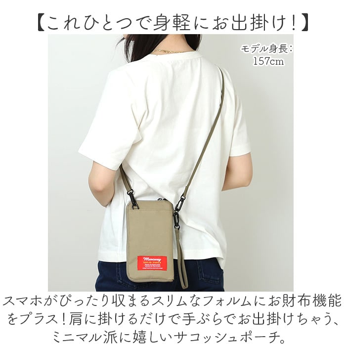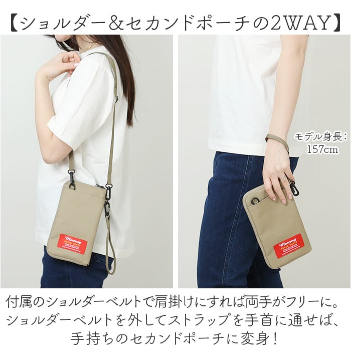 | 商品説明 | 収納したままスマホが操作ができるクリアポケット付き!アーリーアメリカンテイストで人気の「MERCURY -マーキュリー-」から「モバイルサコッシュ」が新登場。【これひとつで身軽にお出掛け!】スマホがぴったり収まるスリムなフォルムにお財布機能をプラス!肩に掛けるだけで手ぶらでお出掛けちゃう、ミニマル派に嬉しいサコッシュポーチ。【まるで長財布並みの収納力】ダブルファスナー式のメインルームは、紙幣やコイン用のファスナーポケット×1に、カードポケット×4を搭載したお財布スペース。お財布を別に持たなくていいから楽ちん!【収納したままタッチ操作OK!】ポーチ正面にはスマホ専用のPVCクリアポケット付き!ポーチ内に収納したままクリアシートごしにタッチ&スワイプ操作が可能♪【マルチに使えるオープンポケット】ポーチの背面のオープンポケットは、パスケースやステーショナリーなど、小物の収納にマルチに使えて便利!【ショルダー&セカンドポーチの2WAY】付属のショルダーベルトで肩掛けにすれば両手がフリーに。ショルダーベルトを外してストラップを手首に通せば、手持ちのセカンドポーチに変身!【センス抜群のジェンダーレスカラー】マーキュリー製品ではお馴染み、シックなインダストリアルカラーがジェンダーレスなスタイルにフィット。アイコニックなレッドタグがパッと目を惹くワンポイント。【ポケット仕様】[メインルーム内側]ファスナーポケット×1、カードポケット×4PVCクリアポケット×1[ポーチ外側]オープンポケット×1 |