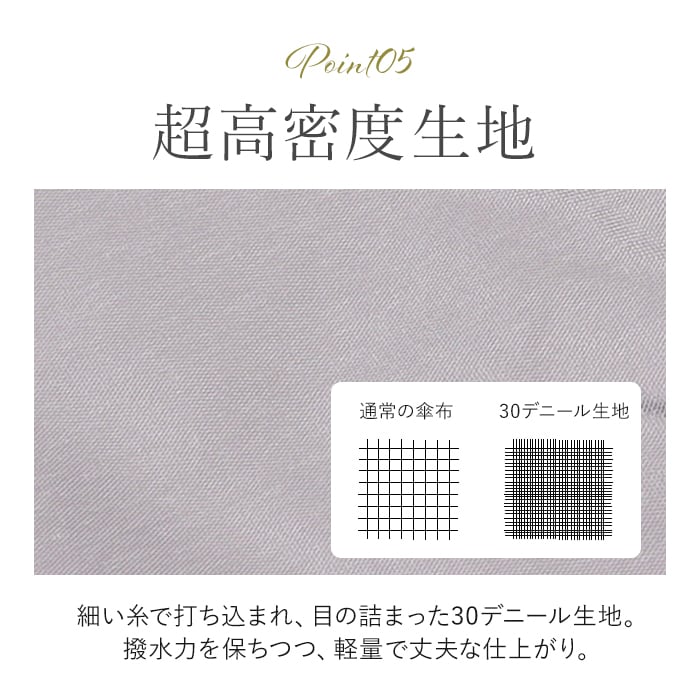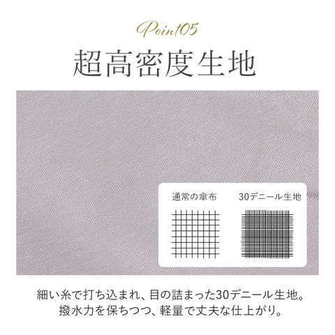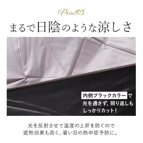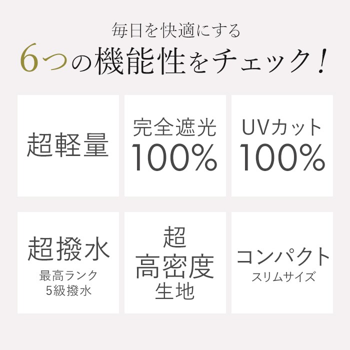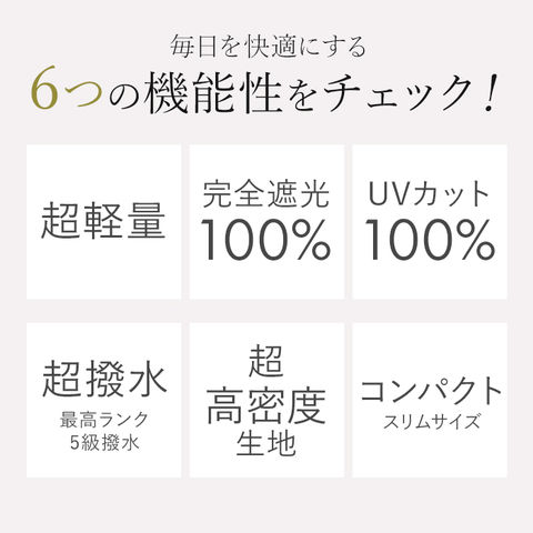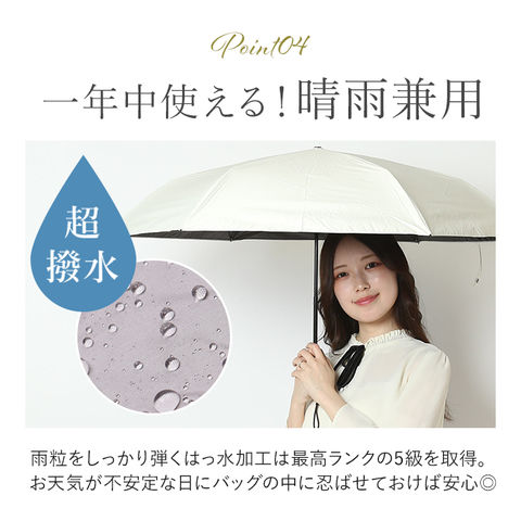 | 商品説明 | 【おしゃれに持ち歩けて機能性も抜群】お出かけに心強い相棒を♪「airyプラス 超軽量カーボン折りたたみ日傘 クラシック」。【365日持ち歩ける超軽量設計】カーボンファイバー骨を使用し、バッグに入れていることを忘れるほどの軽さを実現。【一級の完全遮光で晴れた日の味方】遮光率&UVカット率100%、UPF50+!紫外線をしっかりカット。【まるで日陰のような涼しさを体感】光を反射させて温度の上昇を防ぐ遮熱効果も高く、暑い日の熱中症予防に。(※1)内側ブラックカラーで、照り返しによる肌や目への反射もカットします。【雨粒をサッと弾く超撥水加工】撥水度は最高ランクの5級。雨傘としても使えて、お天気が不安定な日も安心。(※2)激しい雨の際は、雨水が染みることがあるのでご注意ください。【耐久性をアップさせる超高密度生地】細い糸で打ち込まれ、目の詰まった30デニール生地。撥水力を保ちつつ丈夫な仕上がり。【いつでもどこでもイージーオープン】傘骨をポキポキ折る手間なく、スムーズに開閉できる手開き仕様。【耐久性がアップする6本骨】・5本骨より丈夫な6本骨タイプ。一般的な大きさの親骨50cm。【安心・安全のセーフガード付き】爪や指を挟むのを防止するカバーを装備。開閉時のケガを防ぎ、ネイルを施した爪も保護。【強風にも負けず瞬時に元通り】強度の高い親骨。強い風に煽られて反り返ってしまっても、傘を閉じれば元の姿に。【サクッと留められるボタン式バンド】傘生地を留めるバンドは、バチンっと留めやすいスナップボタンタイプ。【持ち歩きに便利な収納袋付き】傘生地と同じカラーの収納袋が付属。カバンに忍ばせて、スマートに持ち歩き。【お気に入りを選べるカラー】年代問わず使いやすい、落ち着きのあるワンカラー。オン・オフ問わず大活躍。 |
