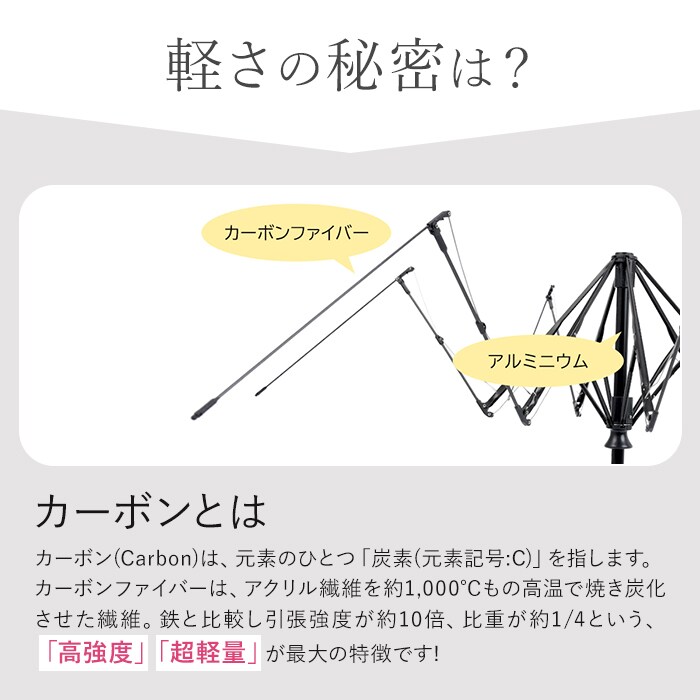 | 商品名 | airyプラス 超軽量カーボン折りたたみ日傘 6本骨 |