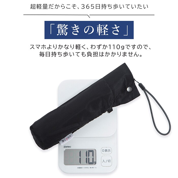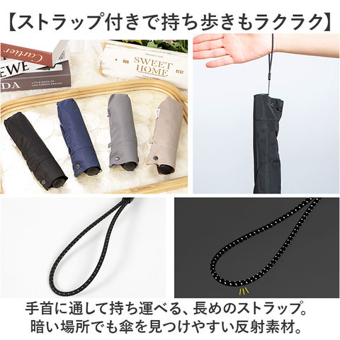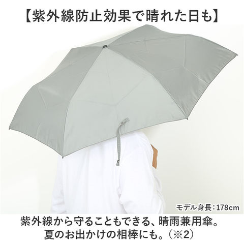 | 商品説明 | 【サッと折りたためてノンストレス】収納がスピーディー!形状安定タイプの「lepre カーボン6本骨雨傘」親骨50cmサイズ。【たたむ動作の煩わしさから解放】特殊な熱加工技術で、生地自体に折り目を。簡単キレイに折りたためる形状安定傘。(※1)半永久的に効果が持続します。【365日持ち歩ける超軽量設計】カーボンファイバー骨を使用し、バッグに入れていることを忘れるほどの軽さを実現。【雨粒をサッと弾く超撥水加工】撥水度は最高ランクの5級。雨粒をしっかり弾いて、たたむ時に手元が濡れにくく乾きも速い◎【耐久性をアップさせる超高密度生地】細い糸で打ち込まれ、目の詰まった30デニール生地。撥水力を保ちつつ丈夫な仕上がり。【いつでもどこでもイージーオープン】傘骨をポキポキ折る手間なく、スムーズに開閉できる手開き仕様。【耐久性がアップする6本骨】・5本骨より丈夫な6本骨タイプ。一般的な大きさの親骨50cm。【安心・安全のセーフガード付き】爪や指を挟むのを防止するカバーを装備。開閉時のケガを防ぎ、ネイルを施した爪も保護。【サクッと留められるボタン式バンド】傘生地を留めるバンドは、バチンっと留めやすいスナップボタンタイプ。【ストラップ付きで持ち歩きもラクラク】手首に通して持ち運べる、長めのストラップ。暗い場所でも傘を見つけやすい反射素材。【持ち歩きに便利な収納袋付き】傘生地と同じカラーの収納袋が付属。カバンに忍ばせて、スマートに持ち歩き。【紫外線防止効果で晴れた日も】紫外線から守ることもできる、晴雨兼用傘。夏のお出かけの相棒にも。(※2)雨傘として使うことを主にしたアイテムです。色の濃淡により紫外線遮蔽率が異なります。数値の目安は淡色:約80%、濃色:約90%。【シーンを選ばないベーシックカラー】オン・オフ問わず持ちやすいカラー&シンプルデザイン。1本持っていれば安心。 |