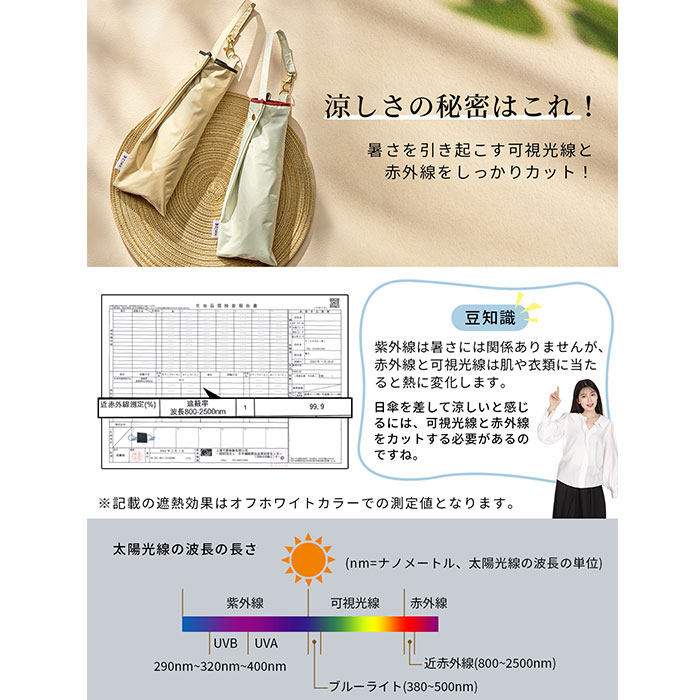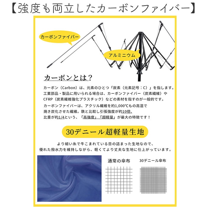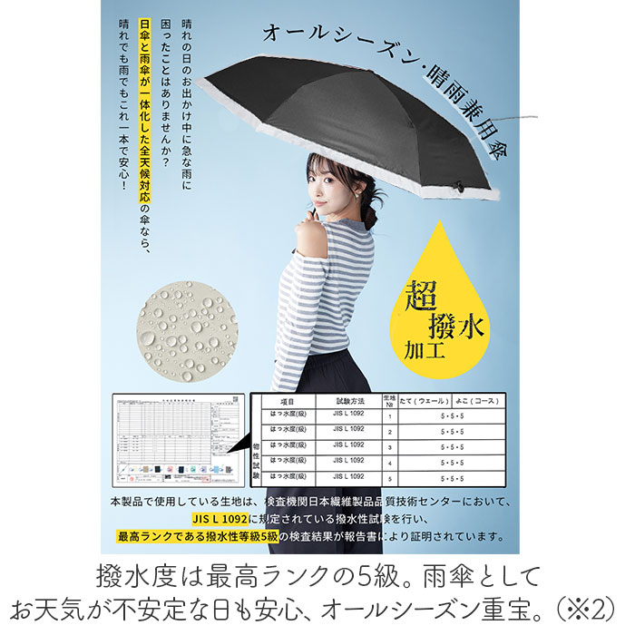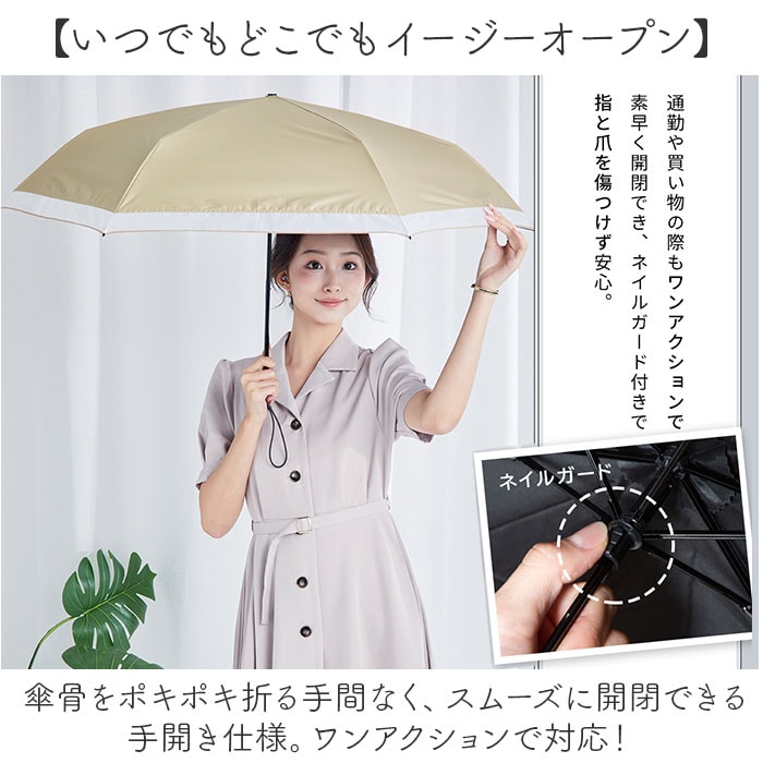 | 商品説明 | 【おしゃれに持ち歩けて機能性も抜群】暑い日のお出かけに心強い相棒を♪airia lumi 超軽量カーボン日傘 オーガンジー。【洗練されたオーガンジーバイカラー】異なる生地感と色味をミックス。シンプルながら上品で、あなただけのスタイルを引き立てる♪【一級遮光で晴れた日の味方】遮光率、UVカット率100%!外生地は太陽光・太陽熱・紫外線を反射し、お肌を守る◎【日陰のような涼しさで熱中症対策】内側ブラックコーティング。光を反射させて温度の上昇を防ぐ遮熱効果も高く、熱中症予防に。(※1)約-17度の遮熱効果があり、暑さを引き起こす可視光全と赤外線をカット。照り返しによる肌や目への反射もカットします。【雨粒をサッと弾く超撥水加工】撥水度は最高ランクの5級。雨傘としてお天気が不安定な日も安心、オールシーズン重宝。(※2)激しい雨の際は、雨水が染みることがあるのでご注意ください。【いつでもどこでもイージーオープン】傘骨をポキポキ折る手間なく、スムーズに開閉できる手開き仕様。ワンアクションで対応!【安心・安全のネイルガード付き】爪や指を挟むのを防止するカバーを装備。開閉時のケガを防ぎ、ネイルを施した爪も保護。【大人と子供をしっかり守るサイズ】直径が94cmもあり、大人1人子供1人入れる大きさ。【風に煽られてもひっくり返らない】風の力に耐える、特殊な縫製技術。ひっくり返らず、安心して使えるのもポイント。【強度も両立したカーボンファイバー】アクリル繊維を高温で焼いて炭化。鉄と比較して引張強度が約10倍、比重は約1/4。【サクッと留められるボタン式バンド】傘生地を留めるバンドは、バチンっと留めやすいスナップボタンタイプ。【365日ストレスなく持ち歩ける】カーボン&軽くて丈夫な生地を使用し、超軽量を実現!バッグに忍ばせやすいコンパクトさ。【両手が自由に!暗い場所では反射】お買い物や子連れ外出、スマホを使う時もラクに持てる長めのストラップ。反射材もプラス。(※3)暗い場所でも微かな光で見つけやすい仕様です。 |