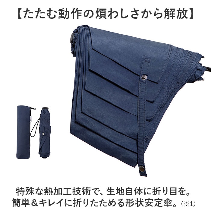 | 商品説明 | 【サッと折りたためてノンストレス】収納がスピーディー!「Selfold 形状安定カーボン 折りたたみ傘 55cm」。【たたむ動作の煩わしさから解放】特殊な熱加工技術で、生地自体に折り目を。簡単&キレイに折りたためる形状安定傘。(※1)半永久的に効果が持続します。【365日持ち歩ける超軽量設計】カーボンファイバー骨で、バッグに入れていることを忘れるほどの軽さを実現。急な雨にも対応◎【強度も両立したカーボンファイバー】アクリル繊維を高温で焼いて炭化。鉄と比較して引張強度が約10倍、比重は約1/4。【雨粒をサッと弾く超撥水加工】水滴を吸収せずに弾く最高ランク5級の撥水力。軽く振るだけで水気が飛び、バッグインも安心。【耐久性をアップさせる超高密度生地】細い糸で打ち込まれ、目の詰まった30デニール生地。撥水力を保ちつつ丈夫な仕上がり。【ワンアクションでラクラク開閉】傘骨をポキポキ折る手間不要◎いつでもどこでもイージーオープンできる手開き仕様。【安心・安全のセーフガード付き】爪や指を挟むのを防止するカバーを装備。開閉時のケガを防ぎ、ネイルを施した爪も保護。【6本骨&使い勝手の良いサイズ】・5本骨より丈夫な6本骨タイプ。適度な大きさでしっかりと雨から守る、親骨55cm。【サクッと留められるボタン式バンド】傘生地を留めるバンドは、バチンっと留めやすいスナップボタンタイプ。【バッグの隙間にスッと収まるサイズ】折りたたんで収納袋にいれると、とってもスマート。バッグの中でもかさばらない!(※2)収納袋はファスナー式です。【ディテールにもさりげないこだわり】手首に掛けられる長めの持ち手。紐には、暗い場所でも見つけやすい反射材を使用。【紫外線防止効果で晴れた日も】紫外線から守ることもできる、晴雨兼用傘。夏のお出かけの相棒にも。(※3)雨傘として使うことを主にしたアイテムです。色の濃淡により紫外線遮蔽率が異なります。数値の目安は淡色:約80%、濃色:約90%。 |