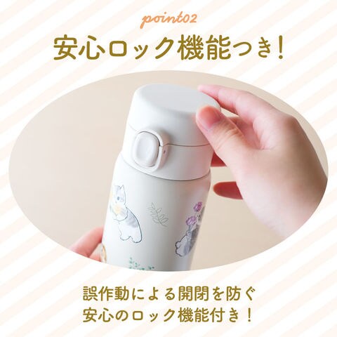 | 商品説明 | 猫愛あふれるイラストが人気の作家・ぢゅのさんが描く、「mofusand(モフサンド)」の保温・保冷対応ステンレスワンプッシュボトル(480ml)が登場。絵柄部分がほんの少しぷっくり♪可愛いもふもふにゃんこに、季節や生活感をプラス。ほっこり癒されるデザインが魅力!フタはワンプッシュオープン式。片手でラクラク開閉♪誤作動による開閉を防ぐ安心のロック機能付き!本体内側と外側が真空断熱された、ステンレス2重構造タイプ。冷たいものも温かいものも飲み頃をキープ!お出かけなどの持ち運びに最適な容量480ml。ボトル本体は、氷が入れやすい広口設計。飲み物もラクラク注げちゃう!パーツは取り外して洗えて衛生的。猫好きなお友達へのプレゼントにもおすすめ。 |