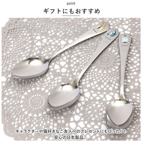 | 商品説明 | 猫愛あふれるイラストが人気の作家・ぢゅのさんが描く「mofusand」の、カレースプーンが新登場。【スタイリッシュなカレースプーン】丈夫なステンレススチール素材を使用し、食材をすくいやすい形状。食卓に馴染みやすいシンプル設計。【食卓に癒やしを♪】柄尻にはmofusandのキャラクターイラストをプリント。いつもの食卓が、もっと楽しくなること間違いなし☆【ギフトにもおすすめ】キャラクターや猫好きなご友人へのプレゼントにもぴったり!安心の日本製品。 |
