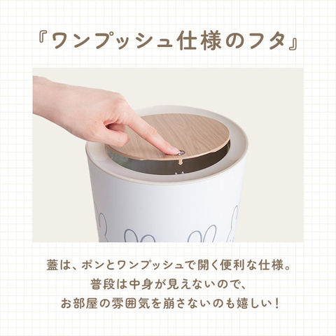 | 商品説明 | 脚付きデザイン×ナチュラルなウッド調がおしゃれ☆ミッフィー 小物入れ兼ダストボックス が登場。【小物入れ兼ダストボックス】ダストボックスとしてはもちろん、小物入れとしても使える。マルチに使えるおしゃれアイテムで、お部屋のインテリアをワンランクアップ☆【ナチュラルデザイン】キャラものだけど、ちゃんとオトナっぽい。ウッド調の蓋と脚で、ナチュラルな印象に仕上げたアイテム。リビングから子供部屋まで幅広くマッチ。【袋止めリング付き】ゴミ袋を内側にセットできる袋止めリングを搭載。外に袋の端が飛び出さずに使えるので、スタイリッシュ。【ワンプッシュオープン】蓋は、ポンとワンプッシュで開く便利な仕様。蓋付きで、中身が見えないのも嬉しいポイント。【脚は取り外し可能】脚は着脱式で、取り付けずに使うことも可能。脚を付けると高さがでるので、ゴミを捨てやすい◎【ギフトにも】キャラクター好きな方、ナチュラルテイストが好きな方やお子様へギフトとして贈るのもオススメ☆大人から子供までみんなが使えるアイテム。 |