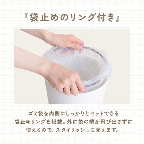 | 素材 | [本体]ポリプロピレン樹脂 [フタ]ABS樹脂 [脚]ポリプロピレン樹脂、ポリエチレン樹脂 [袋止めリング]ポリプロピレン樹脂、ポリエチレン樹脂 [滑り止め]スチレン系熱可塑性エラストマー |