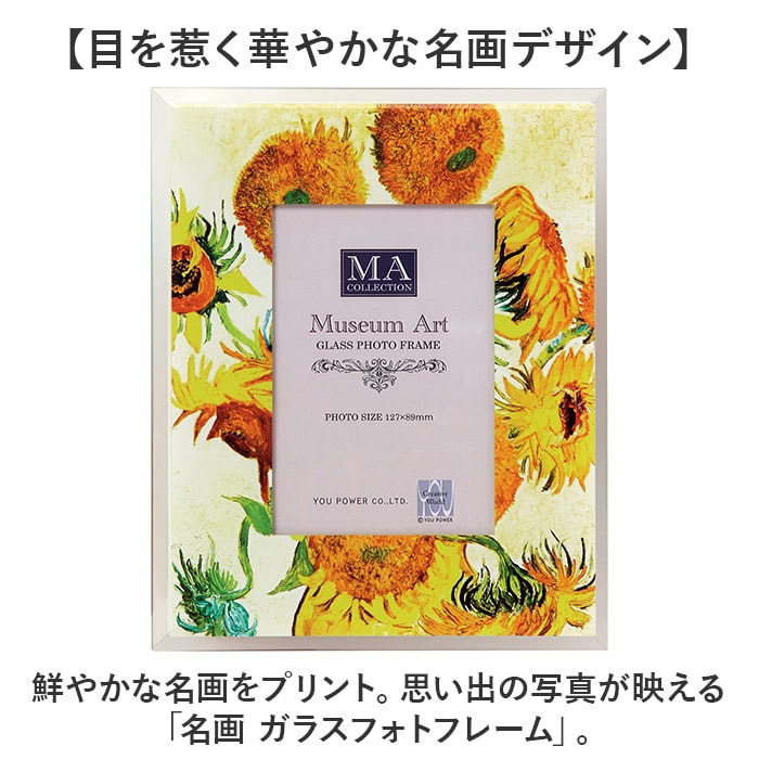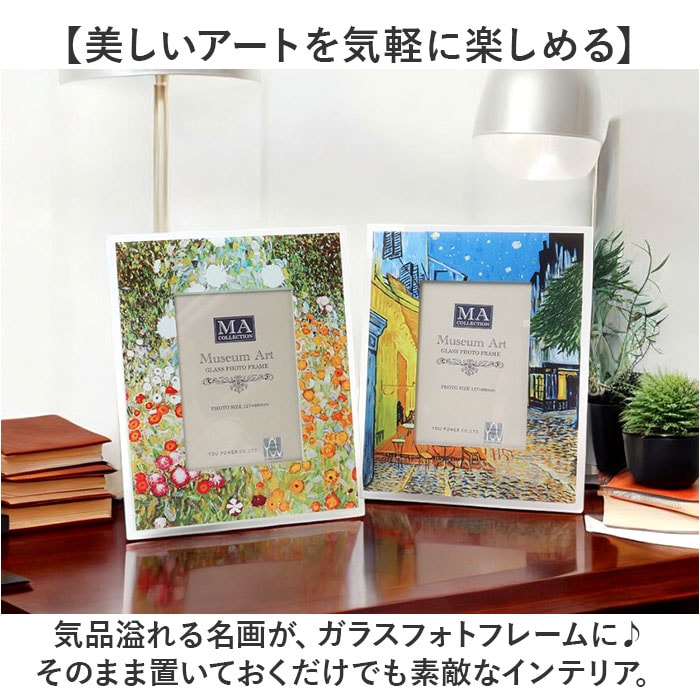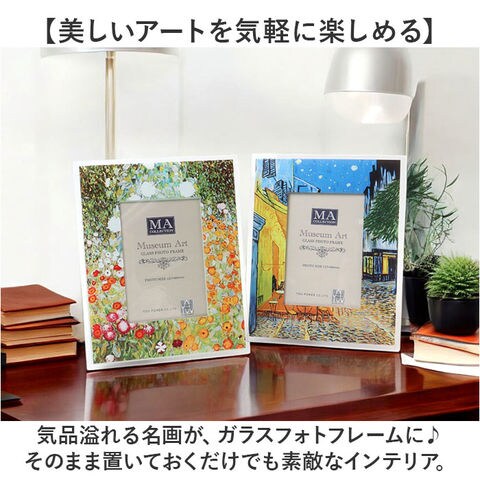| 商品説明 | 【目を惹く華やかな名画デザイン】鮮やかな名画をプリント。思い出の写真が映える「名画 ガラスフォトフレーム」。【美しいアートを気軽に楽しめる】気品溢れる名画が、ガラスフォトフレームに♪そのまま置いておくだけでも素敵なインテリア。【立て掛けできる縦横両用タイプ】背面のスタンドを使って、サッと立て掛けOK。縦横お好みで選んで飾ることが可能。【絵画好きな方へのプレゼントにも】彩り豊かな名画と共に、お気に入りの写真を。ギフトにも喜ばれそう♪ |