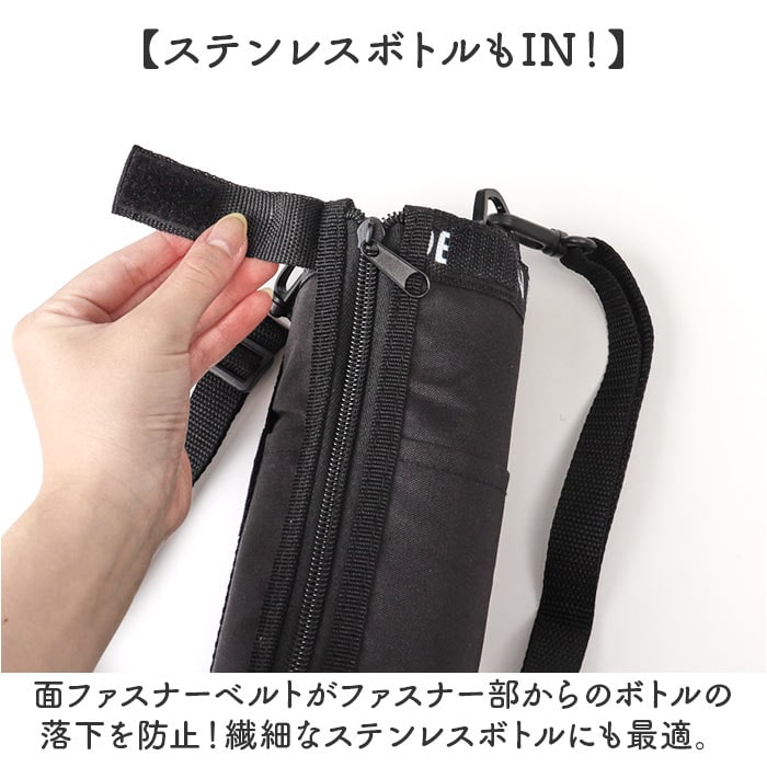 | 商品説明 | 【肩から掛けて、いつでも水分補給】ワイルド&クールなカラーに、MIFFYちゃんのラインアートが映える「DIY 保冷ペットボトルケース」【ボトルの出し入れスムーズ】サイドのファスナーが大きく開いて、ボトルの出し入れが楽ちん。500ml~600mlのボトルに対応。【保冷効果をいっそうキープ】生地芯材に保冷効果のある発泡ポリエチレンを内蔵し、ランチの時間までボトルの冷たさをキープ。【サッとひと拭きで簡単キレイ】内側にははっ水性に優れたEVA樹脂加工生地を使用。汚れや水滴がサッと拭き取れてお手入れ簡単。【大切なマイボトルを優しく保護】発泡ポリエチレン素材のスポンジのようなソフトな感触で、ボトルをキズや衝撃から優しく保護。【ステンレスボトルもIN!】面ファスナーベルトがファスナー部からのボトルの落下を防止!繊細なステンレスボトルにも最適。【両手が空いて、ストレスフリー】ショルダーベルトで身軽な肩掛けスタイル♪両手が空いて動きやすく、お子様の通学用にもぴったり。【サイドベルトで飲みやすい♪】ボトルを傾けてそのままゴクゴク飲みたい時に便利!手のひらで支えて持ちやすいサイドベルト付き。【小物も一緒に持ち歩き】バッグ外側に、ウェットティッシュやちょっとした小物がしまえて便利なオープンポケットも装備。【バッグインする時にも便利】ショルダーを外せば、場所を取らずにバッグインもOK!バッグの中が結露で濡れないのが嬉しい。【長く使えて、ぴったりフィット】ショルダーベルトは最長139cmまで伸長。お子さまから大人まで幅広い世代の方にフィット。【お揃い持ちがオススメ】通勤や通学など毎日のランチの持ち歩きには、同じデザインの「ミニトートバッグ」がオススメ。※「Miffy DIY ミニトートバッグ」は、別商品ページでご購入いただけます。ストアの検索窓に、英数字の商品コード「midiyminit」を入力して検索してください。 |