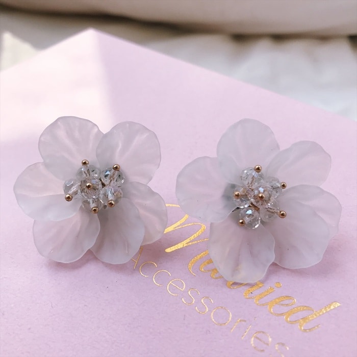 clearフラワーイヤリング【ホワイト】