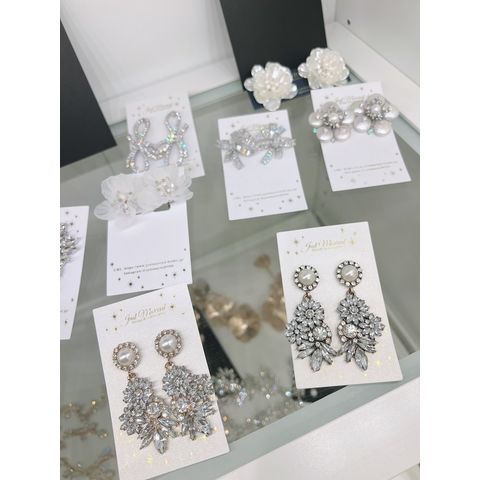 | 商品説明 | 【ブライダルアクセサリーの特徴】すりガラスのような花びらの大振りフラワーモチーフが軽やかで華やかなイヤリング/ピアス。大ぶりなクリアのフラワーモチーフが、耳元にお花が咲いているような印象でとっても可愛い!【このブライダルアクセサリーに合うウェディングシーン】リゾートスタイルにもぴったりなので、ブライダルが終わった後もハネムーン等にご着用可◎ |