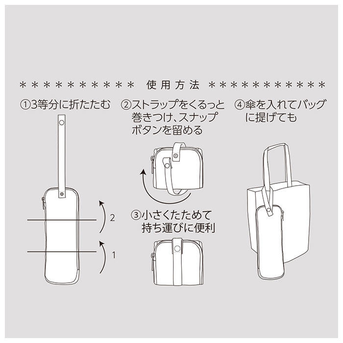 | サイズ | [縦]約28cm/[横]約9cm/[マチ]約2cm [持ち手]約21cm ※外寸サイズとなります。 ・収納対応サイズ [全長]約26cm/[傘周囲]19cmまで ※サイズは当店計測の実寸サイズです。実際の商品ならびにメーカー表記サイズとは多少の誤差が生じる場合がございます。あらかじめご了承ください。 |
