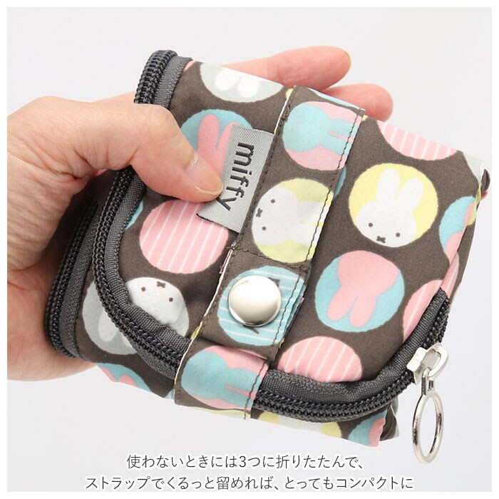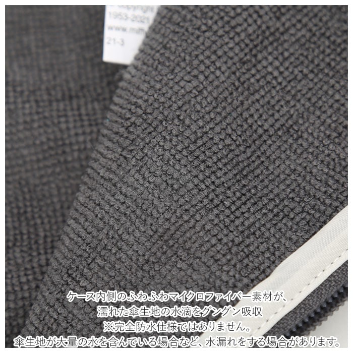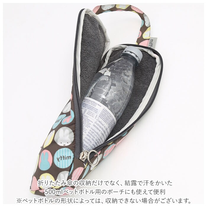 | 商品説明 | すっぽり包み込んで、しっかり吸水!ミッフィーちゃんの折りたたみ傘ケース。開口部のファスナーがL字型に大きく開いて、濡れた折りたたみ傘をすっぽり収納。手荷物が増えず、カバンの中も濡らさない優秀アイテム。ケース内側のふわふわマイクロファイバー素材が、濡れた傘生地の水滴をグングン吸収。(※完全防水仕様ではありません。傘生地が大量の水を含んでいる場合など、水漏れをする場合があります。)全長26cm、折りたたみ時の周囲約19cm程度までの、様々な折りたたみ傘のサイズに対応。使わないときには3つに折りたたんで、ストラップでくるっと留めれば、とってもコンパクトに。折りたたみ傘を収納した状態で、ストラップをカバンのハンドルに取り付けると、傘の持ち運びが楽ちん。折りたたみ傘の収納だけでなく、結露で汗をかいた500mlペットボトル用のポーチにも使えて便利。(※ペットボトルの形状によっては、収納できない場合がございます。)ミッフィーちゃんをモチーフにした、個性的なテキスタイルデザインが魅力。ミッフィーちゃんがケースの生地のどこに隠れているか、探してみてね。 |